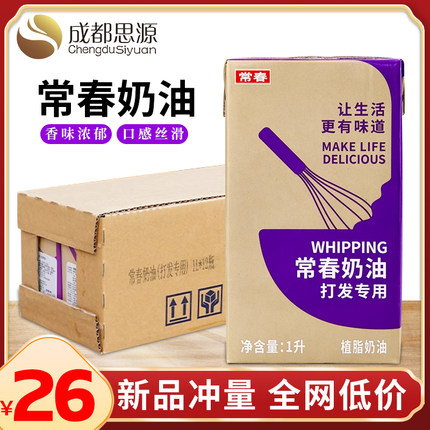 常春淡奶油1L 紫色盒装植物性奶油易打发奶盖烘焙裱花蛋糕店专用