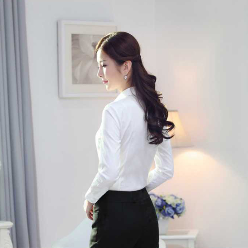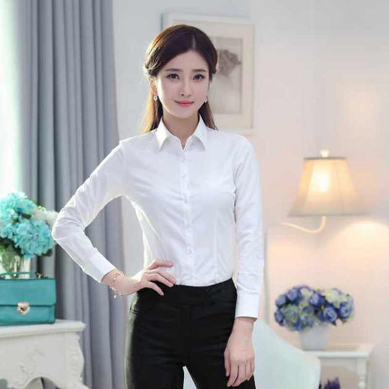 春秋防漏光职业女土白衬衫长袖商务修身显瘦衬衣方领百搭正装上衣