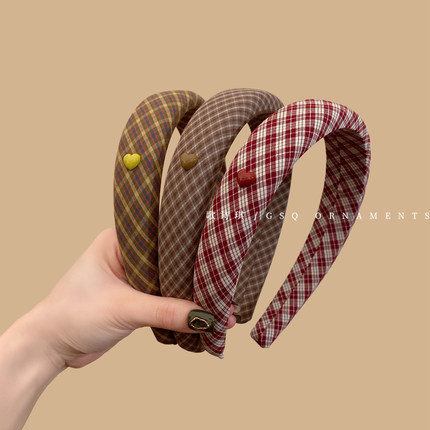 韩国可爱格纹高颅顶发箍ins风小爱心洋气头箍2025新款洗脸压发卡