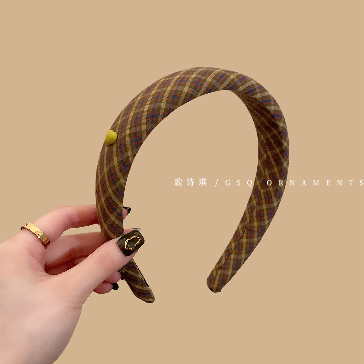 韩国可爱格纹高颅顶发箍