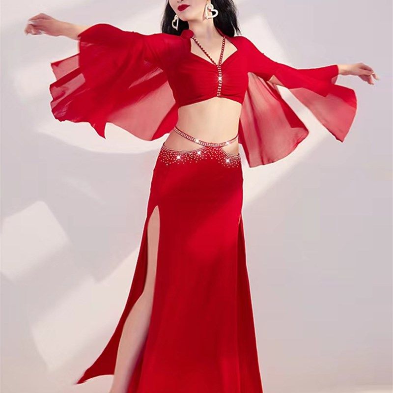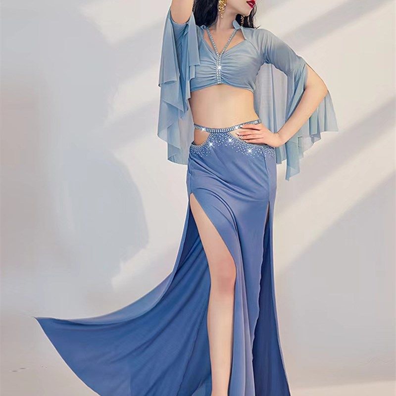 速发肚方舞练功服2024春款东装舞蹈表演出套皮裙子上衣