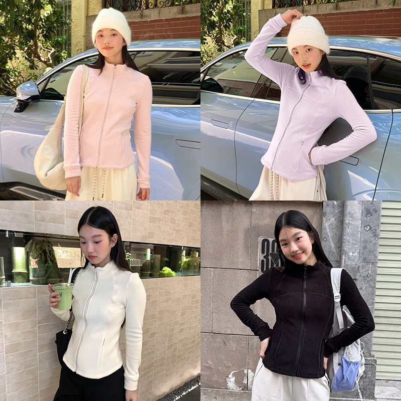 NOW真维斯黑色摇粒绒外套女2025新款秋冬修身内搭冲锋衣抓绒内胆