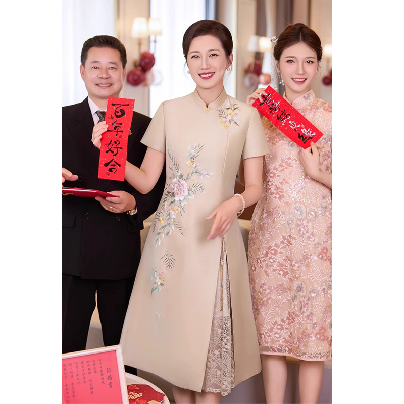 喜婆婆婚宴装2025新款春夏装喜妈妈礼服喜服高贵年轻遮肚子连衣裙