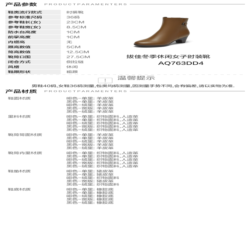 Bata拔佳时装靴女鞋2024冬季商场新款舒适通勤百搭短筒靴AQ763DD4
