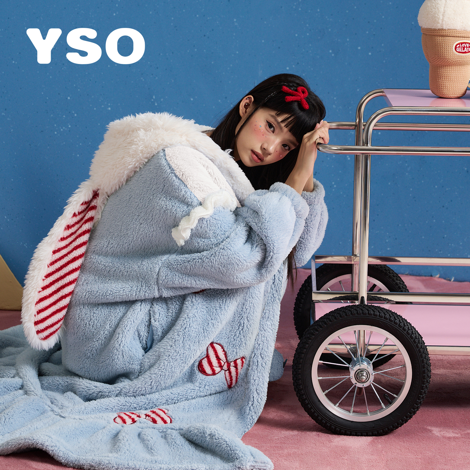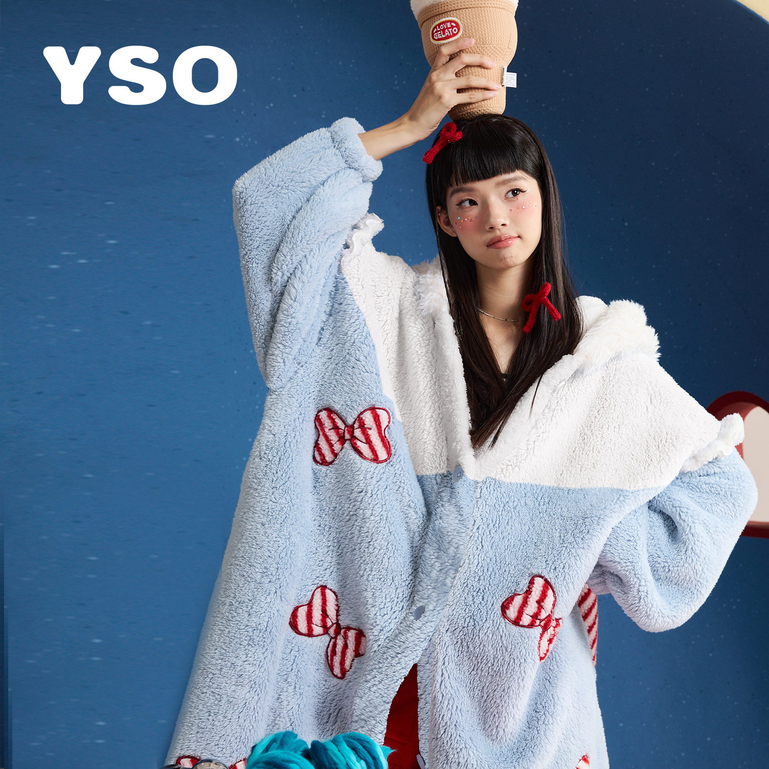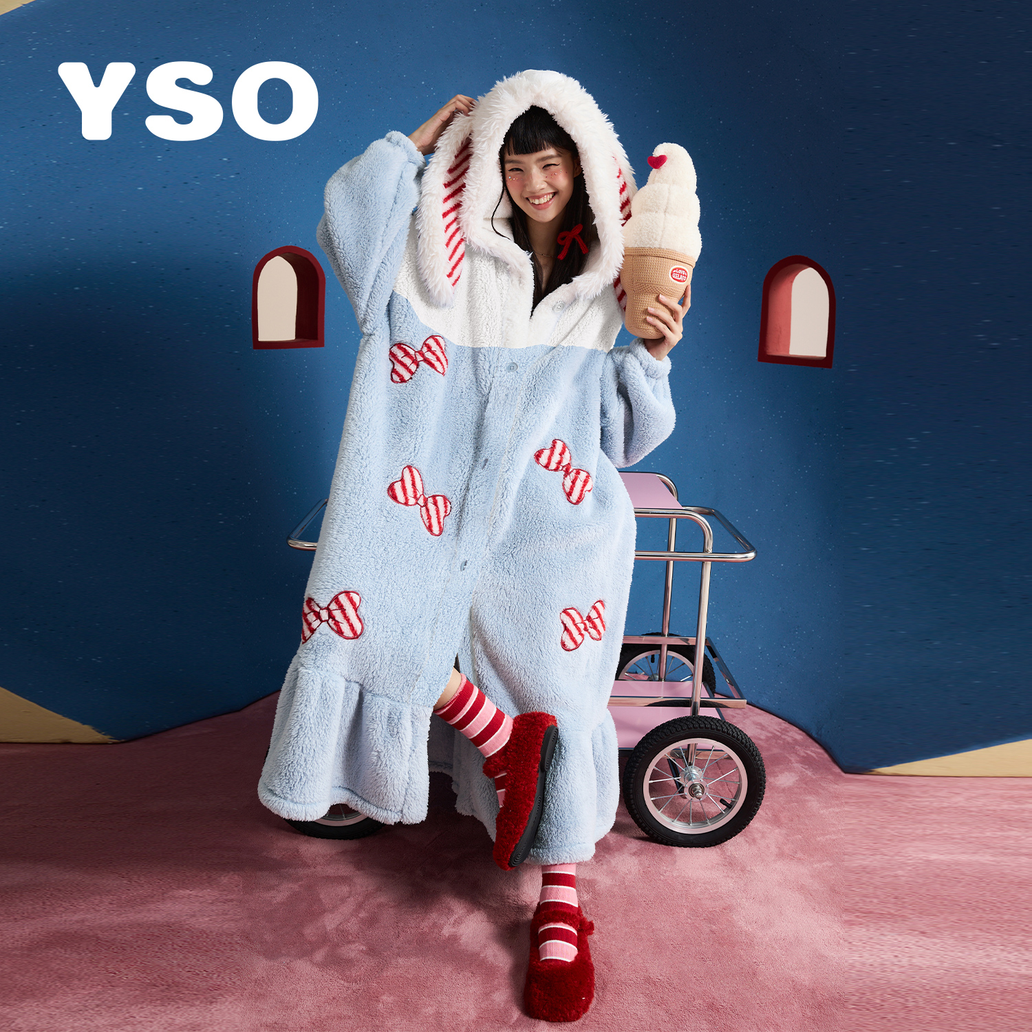 yso【礼物系列】睡裙女秋冬加绒甜美蝴蝶结珊瑚绒长款睡衣冬季女D