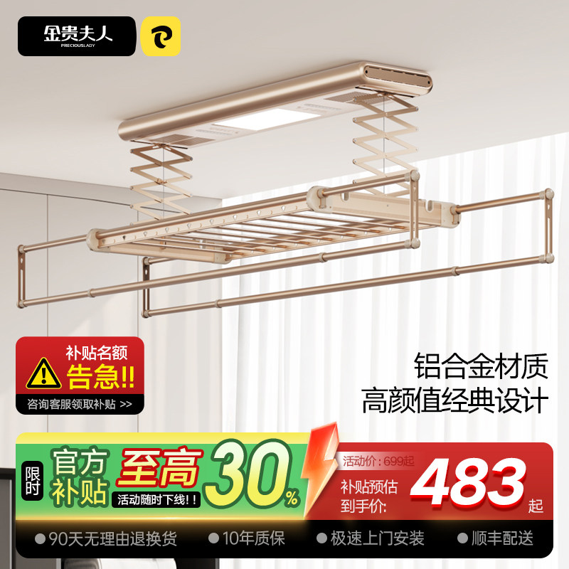 政府补贴金贵夫人智能晾衣架电动晾衣架晒衣杆智能烘干遥控升降