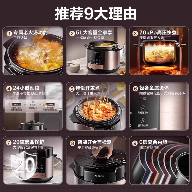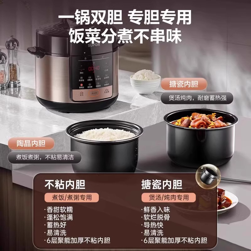 苏泊尔电压力锅家用双胆高压锅5L升多功能饭煲全自动智能官方正品