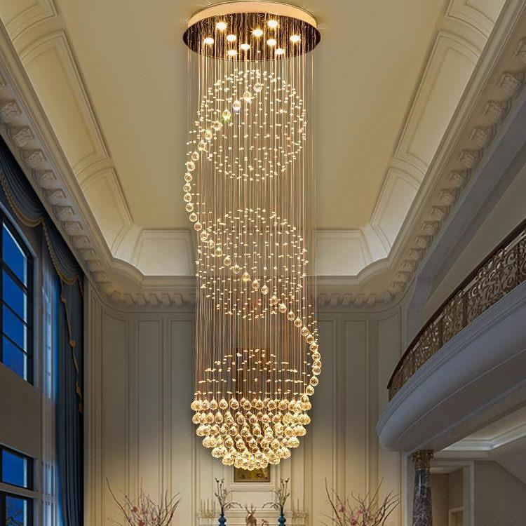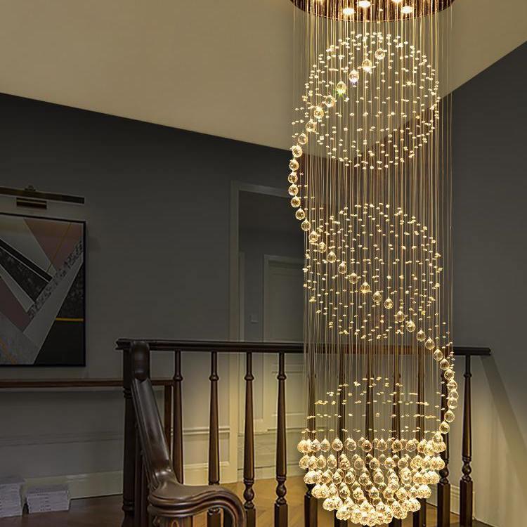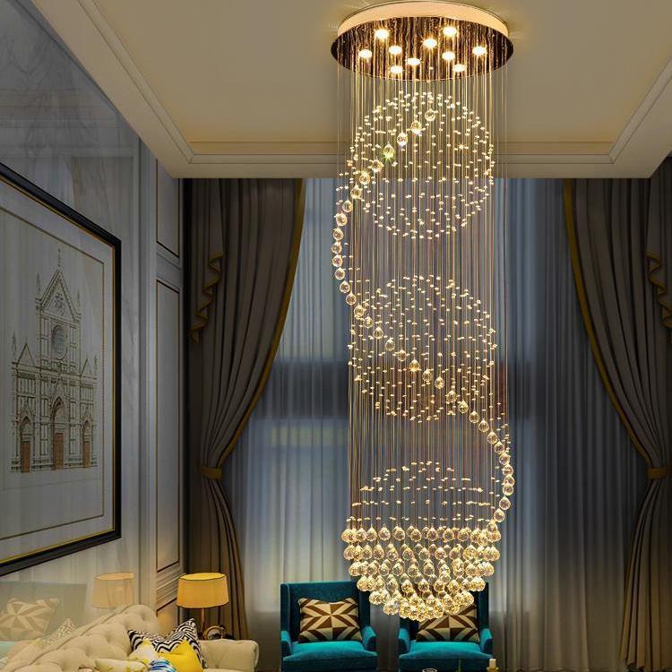 复式楼大吊灯法式轻奢现代别墅客厅中空旋转创意水晶楼梯长吊灯