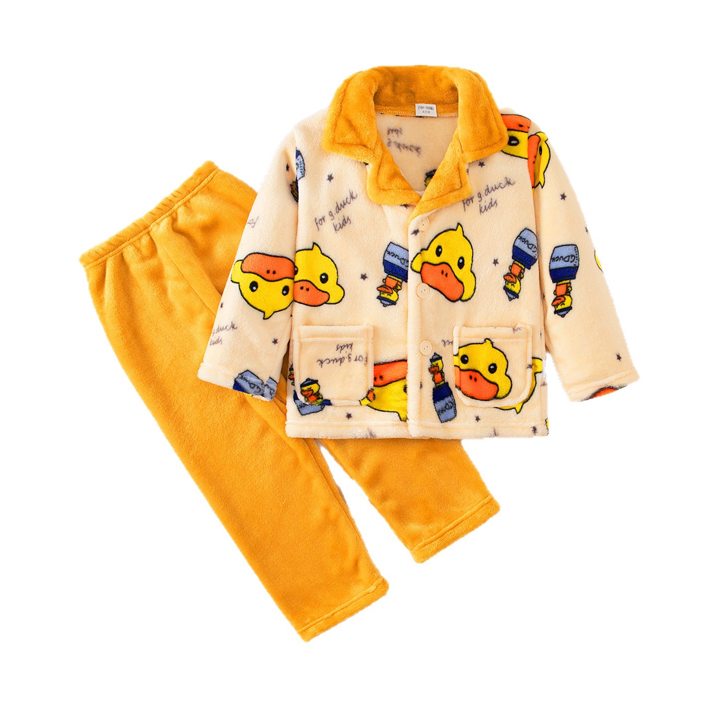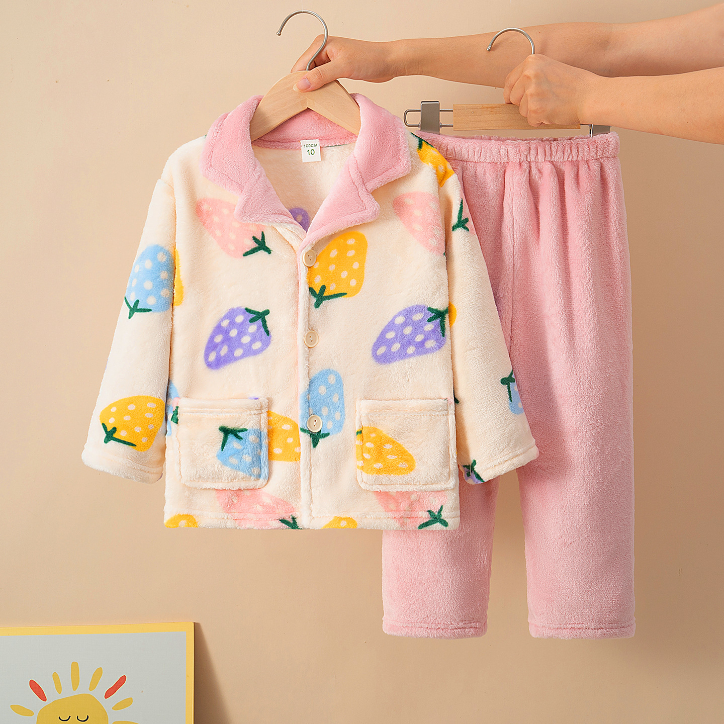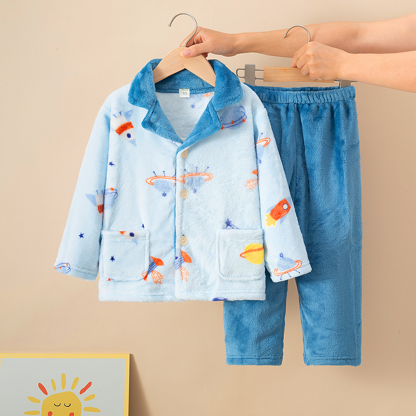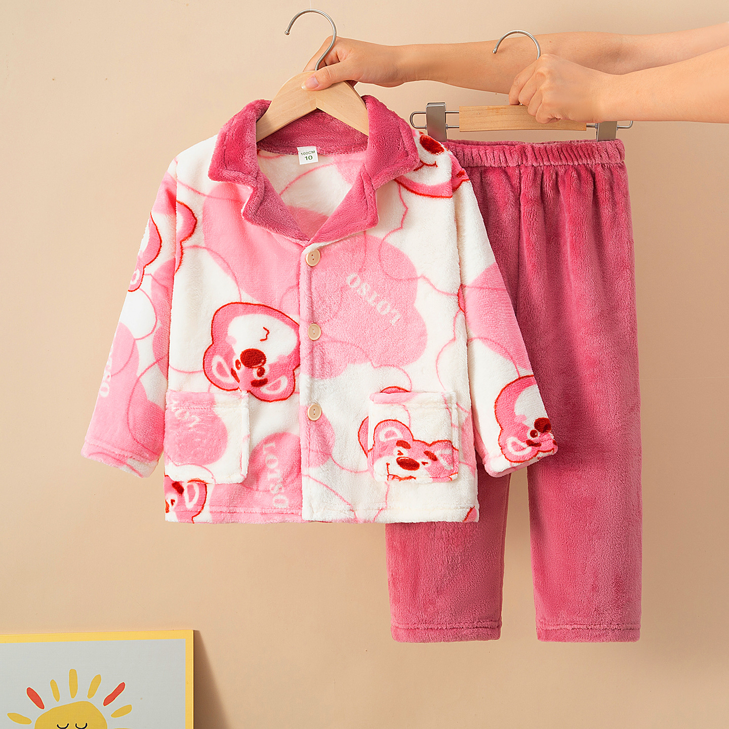 秋冬儿童法兰绒睡衣套装男童女童加厚保暖珊瑚绒亲子装家居服
