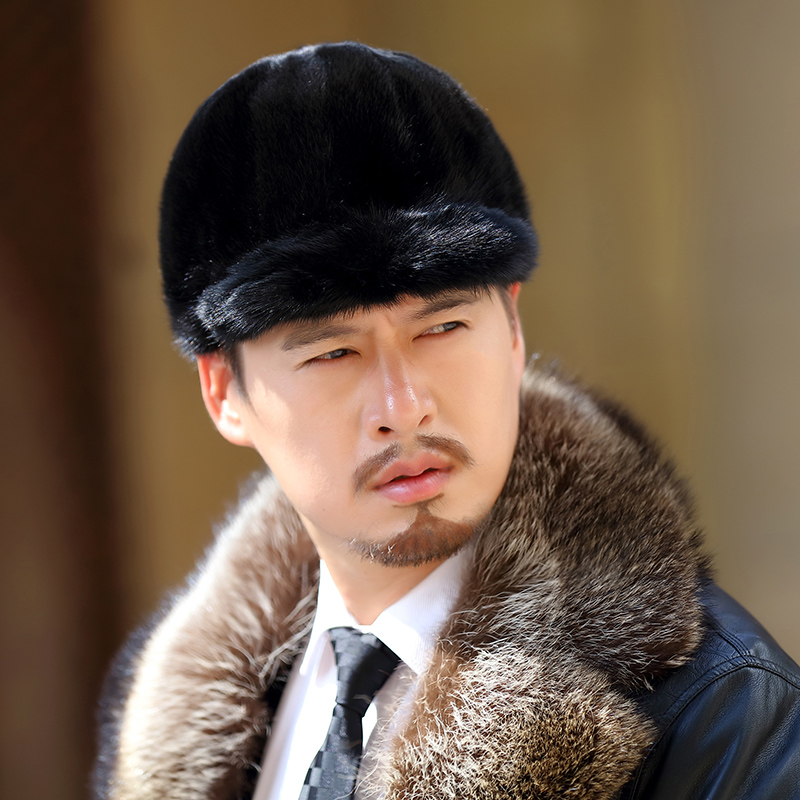 水貂帽子女男鸭舌帽真皮护耳加厚保暖貂皮骑士帽冬季貂毛皮草帽子