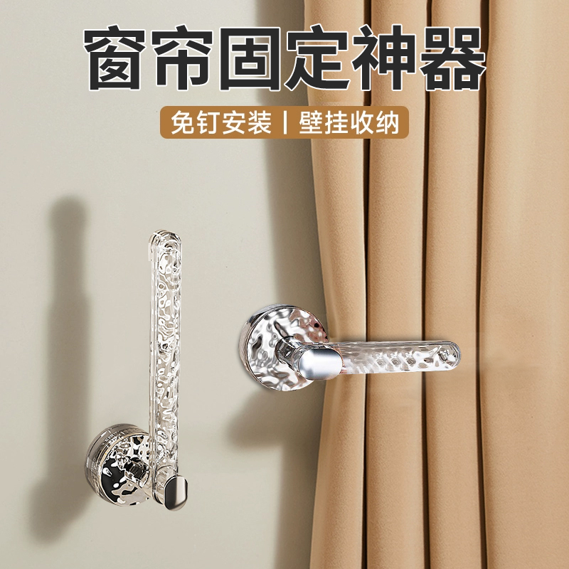 窗帘固定器免打孔浴帘墙卡扣捆绑带挂钩门帘束带靠墙勾夹收拢神器