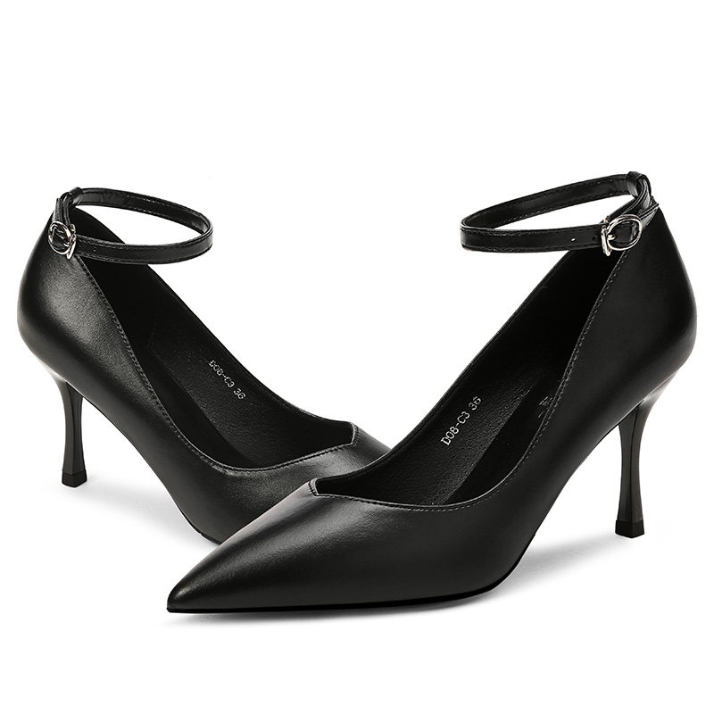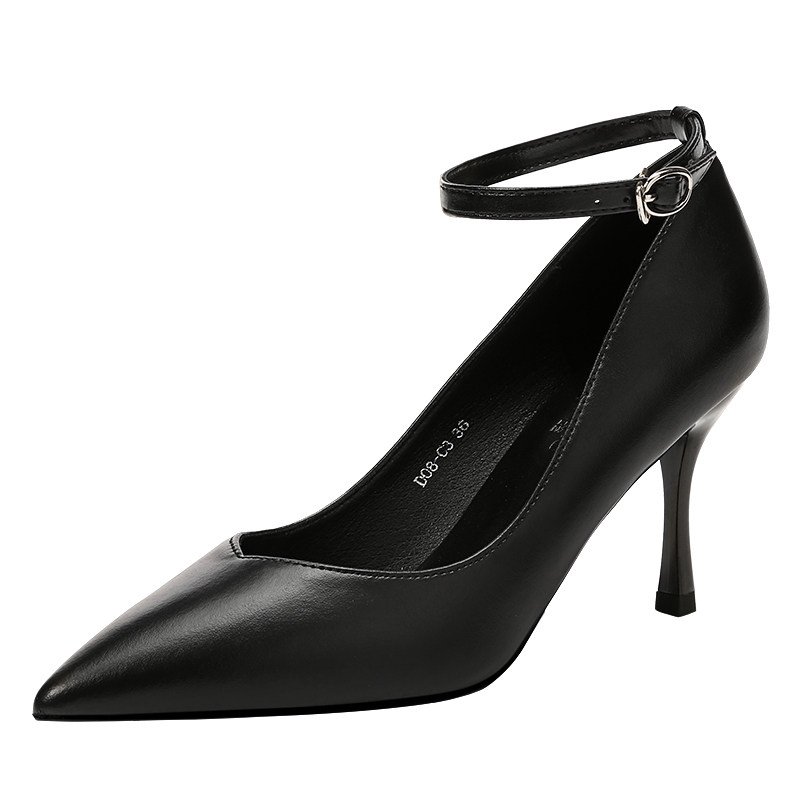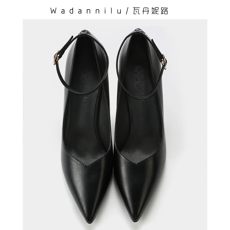 黑色高跟鞋女职业细跟一字扣带低跟百搭上班软皮工作鞋单鞋小码33