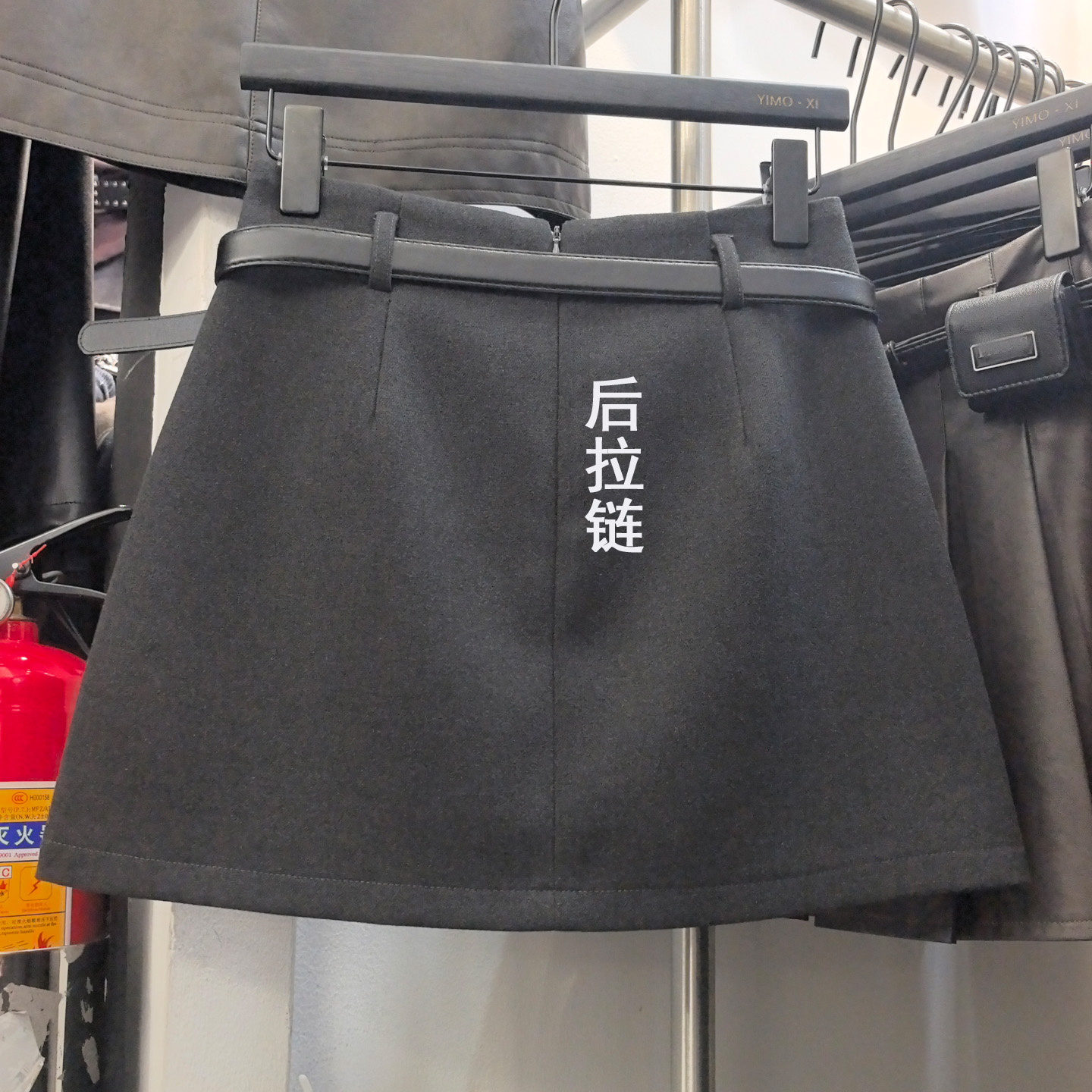 依陌茜高腰短裙女2025秋冬前开叉小个子A字裙显瘦韩版包臀半身裙