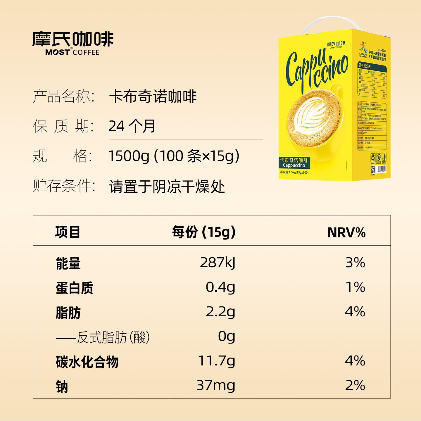 摩氏咖啡卡布奇诺咖啡速溶偏甜奶香学生防提困神三合一粉100条