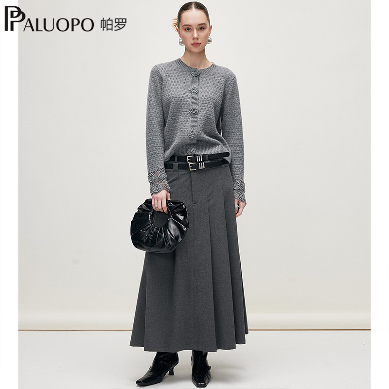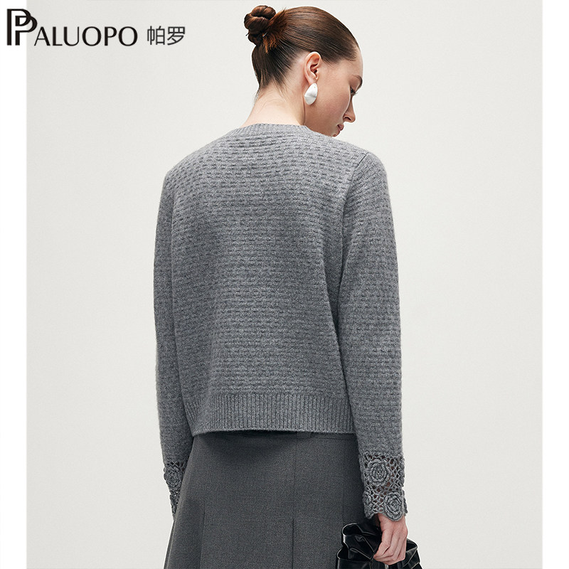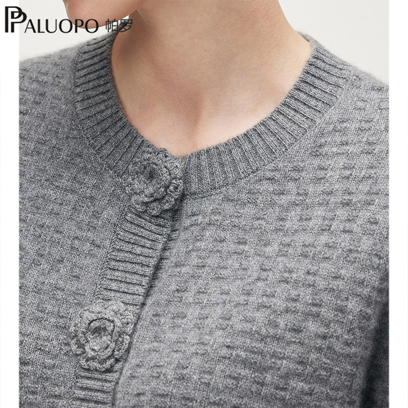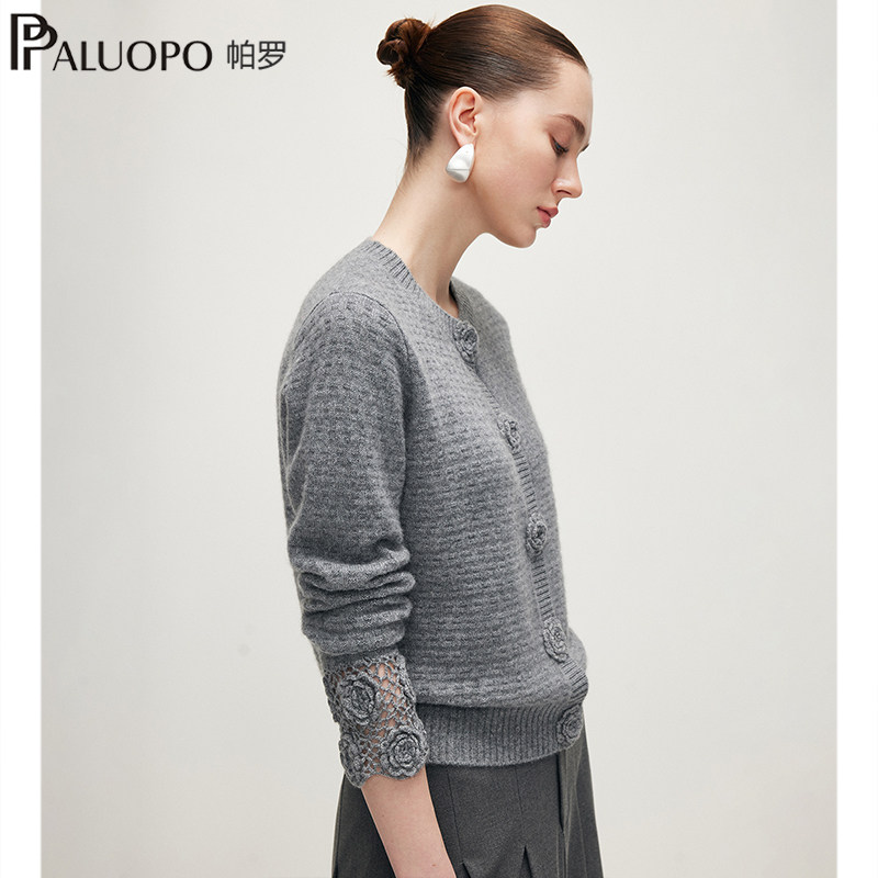 PALUOPO/帕罗【商场同款RED系列】秋的绣花纯山羊绒衫针织开衫