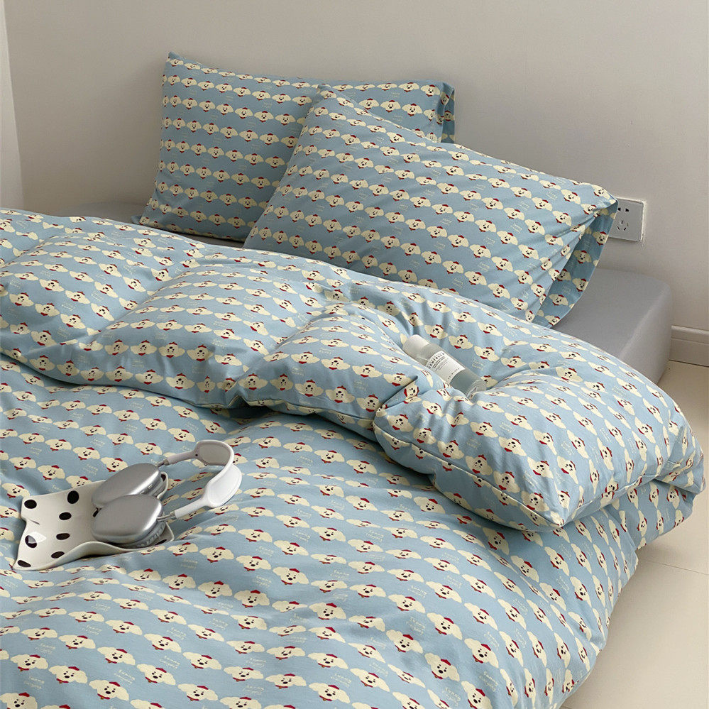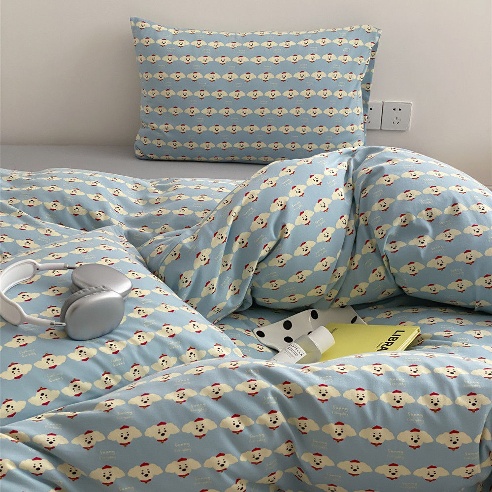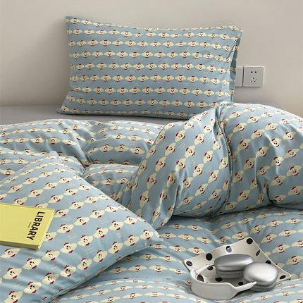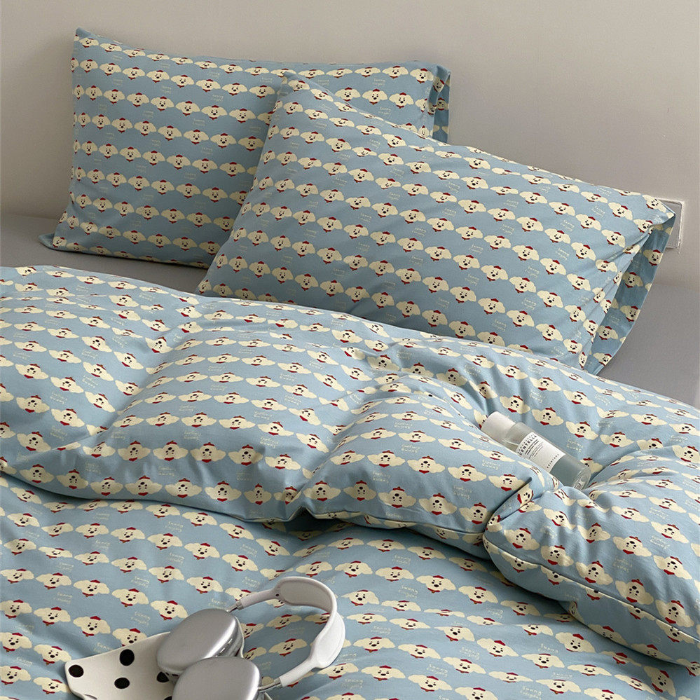 卡通可爱小狗针织棉全棉四件套柔软可裸睡天竺棉床单被套床上用品