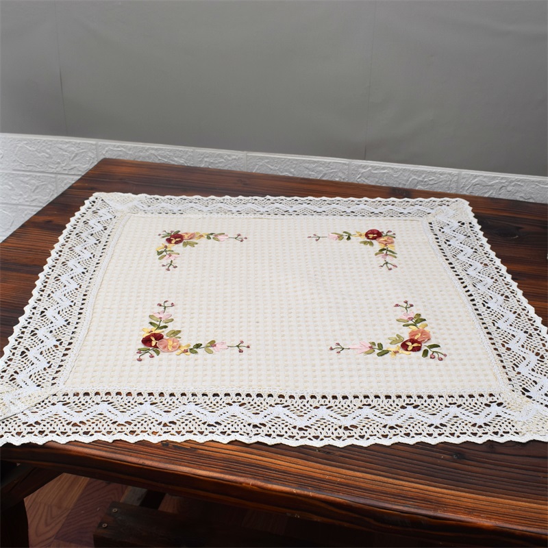 包邮外贸原单桌布床头柜茶壶盖布棉麻丝带绣方巾田园微波炉搭巾