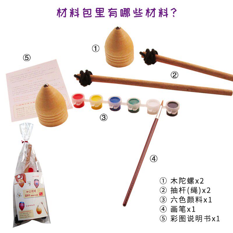 传统木陀螺手绘材料包 儿童涂鸦小学生木头实木木质木制 健身玩具