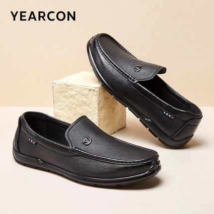 意尔康男鞋春秋羊皮男士乐福豆豆鞋真皮休闲皮鞋中年爸爸鞋