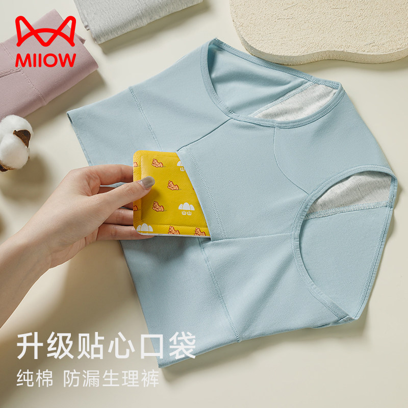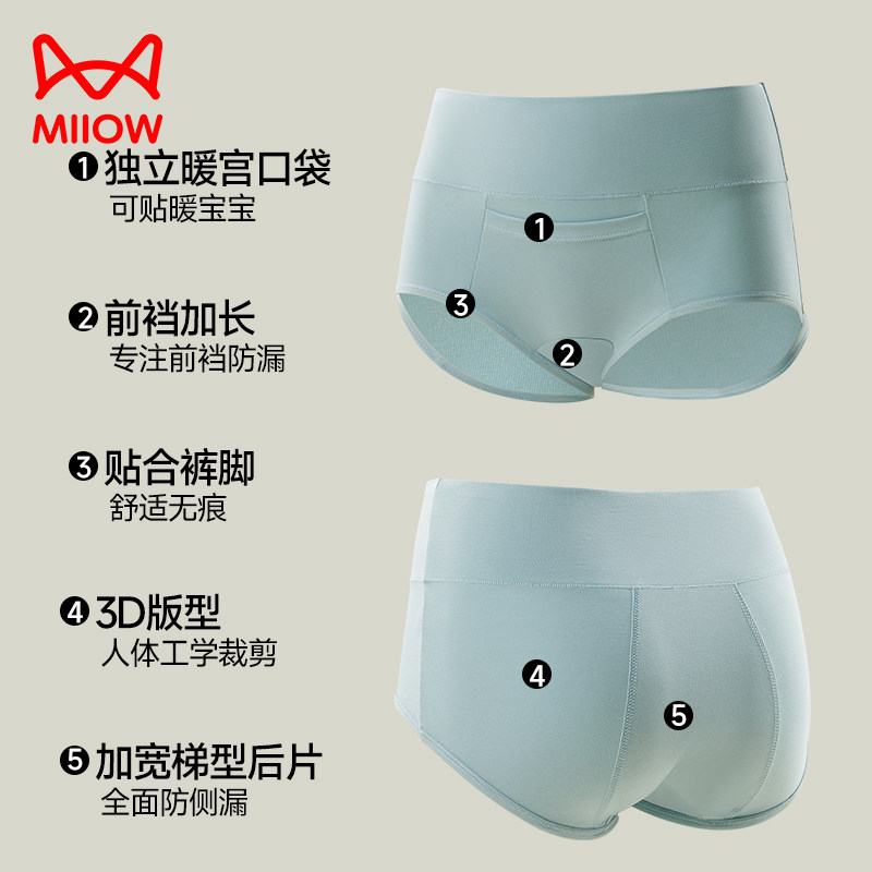 猫人纯棉高腰生理内裤女士抗菌少女生学生姨妈月经期防侧漏三角裤