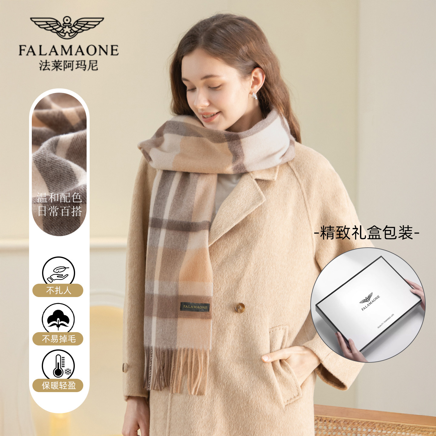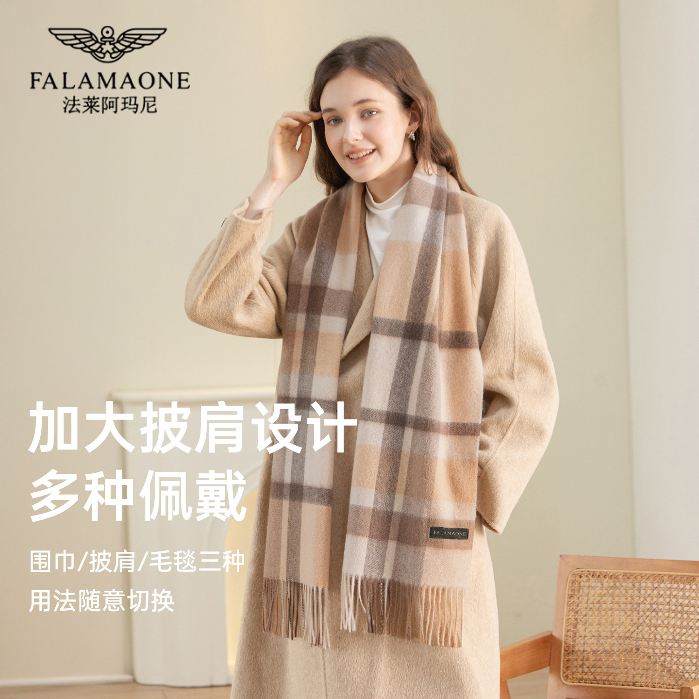 法莱阿玛尼轻奢围巾女秋冬高级感2025新款100%羊毛氛围感女生礼物