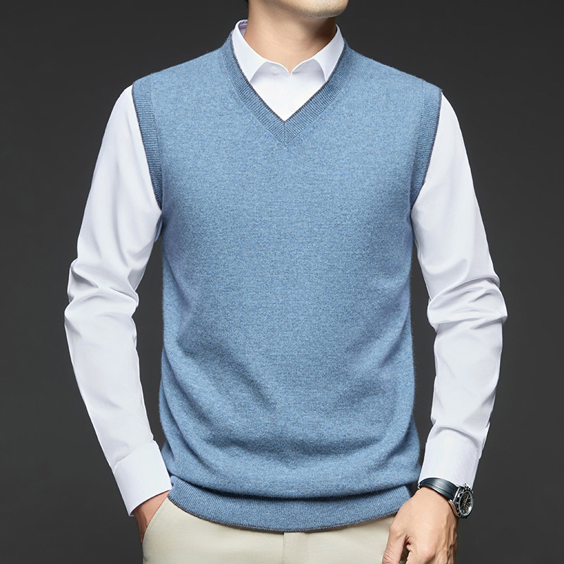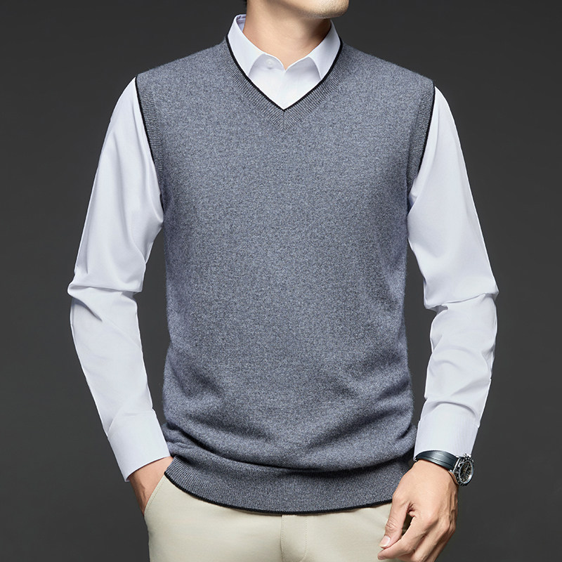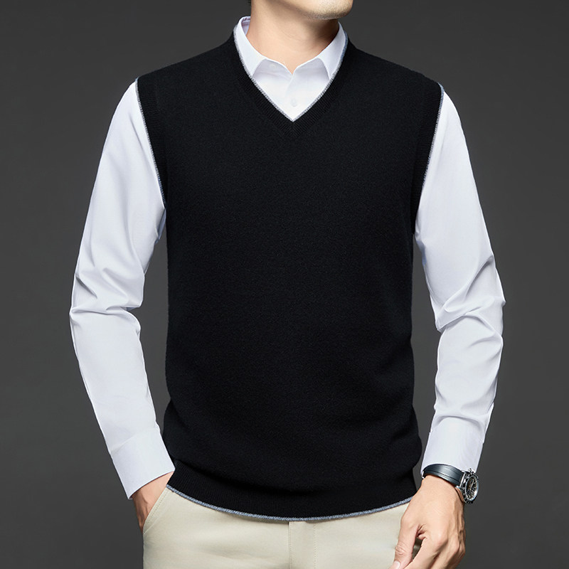利郎男精纺100%纯山羊绒背心V领坎肩套头鸡心领秋冬休闲毛衣马甲