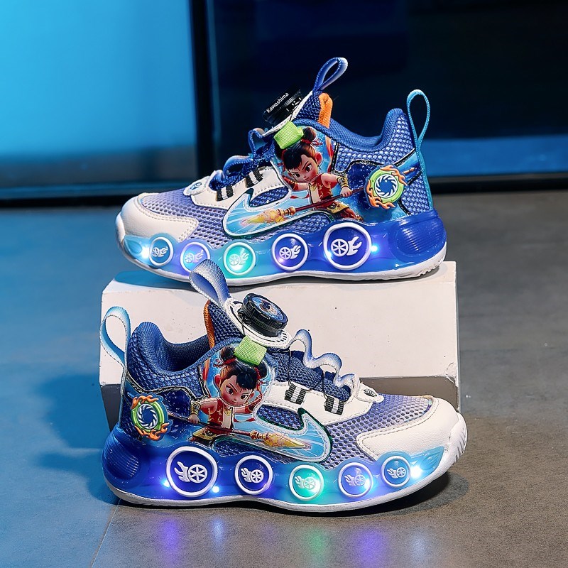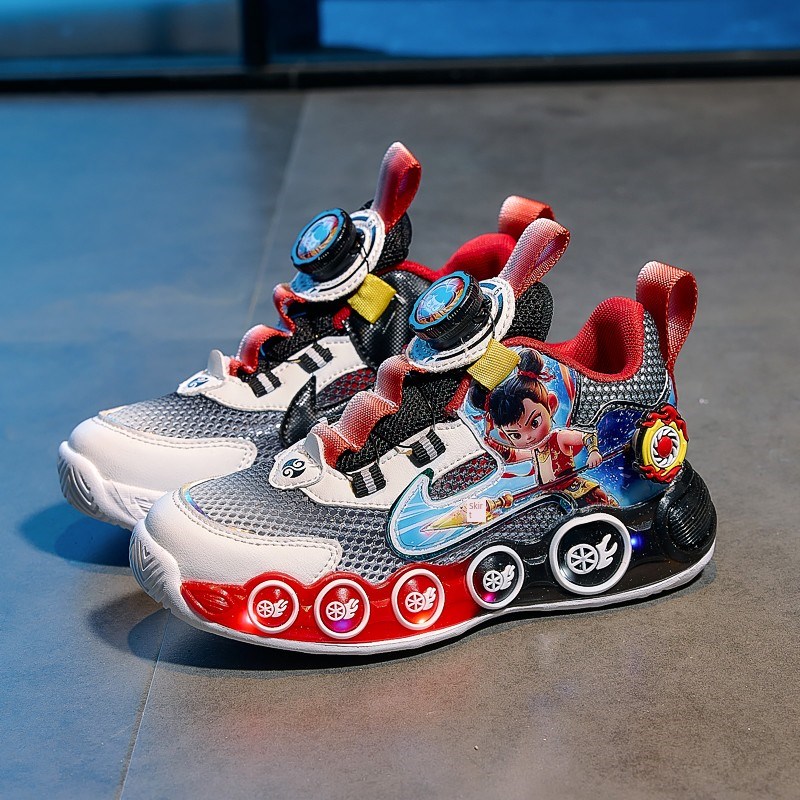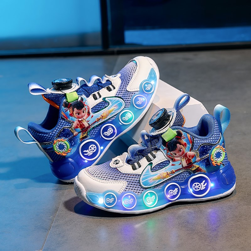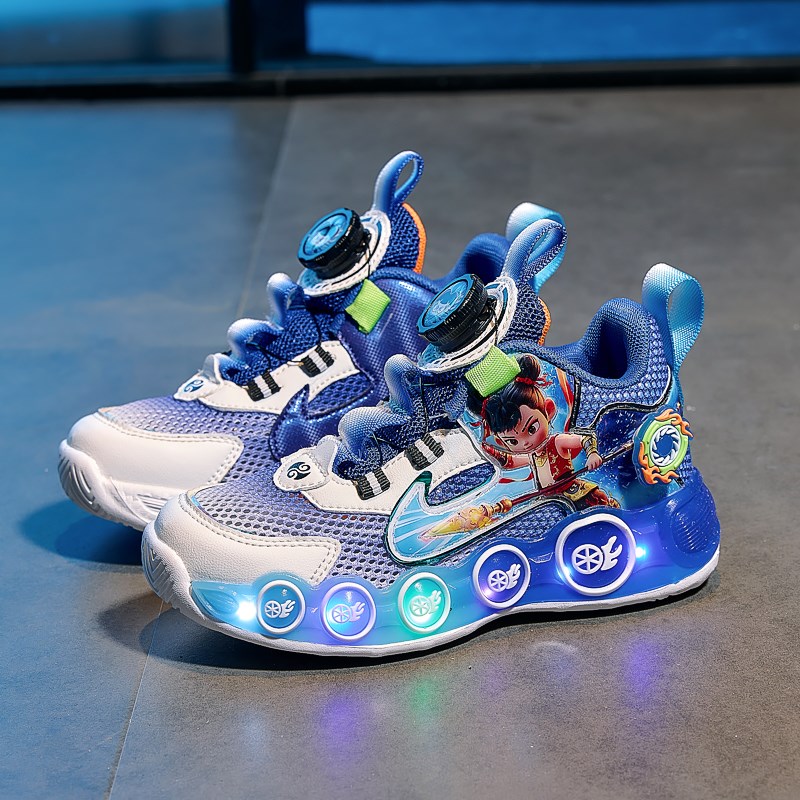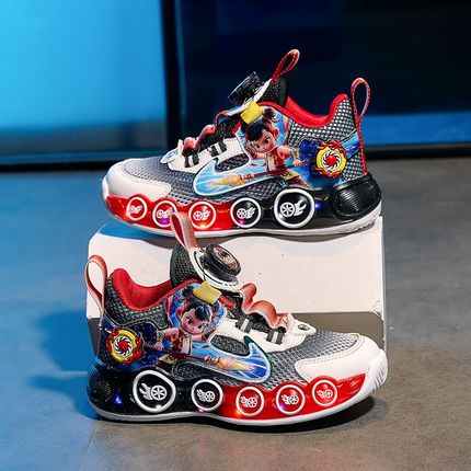 哪吒男鞋夏季款式2025新款儿童透气单网鞋轻便运动爸爸鞋点亮男孩