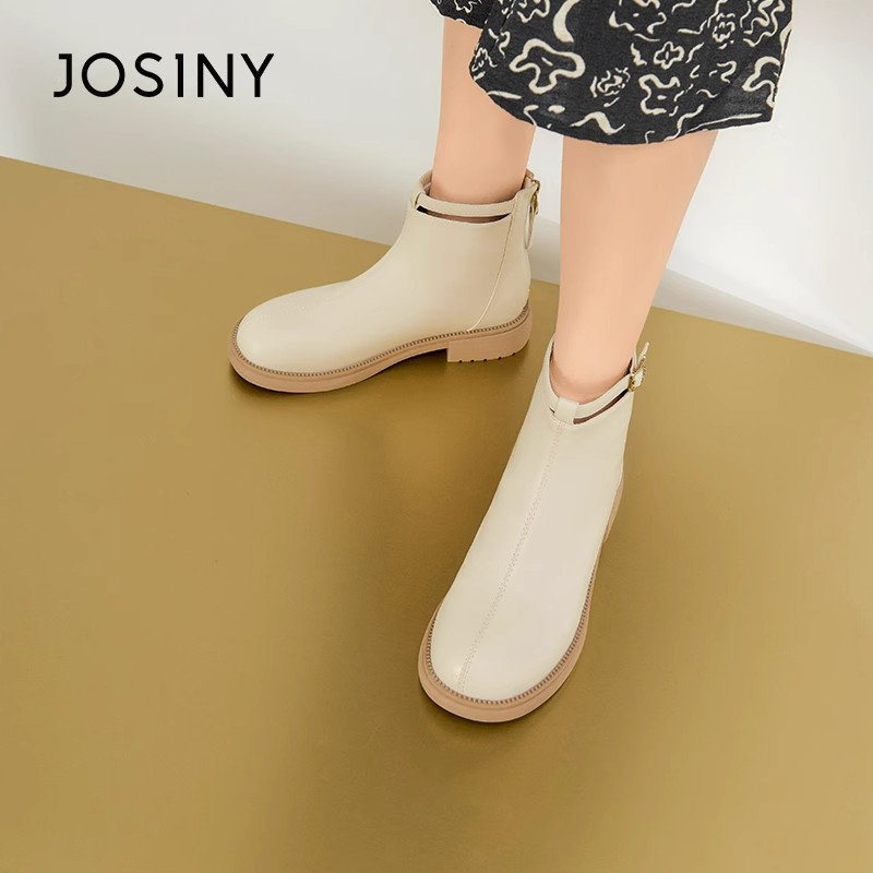 卓诗尼女鞋秋冬新款圆头短靴通勤百搭时装靴切尔西靴时尚厚底靴子