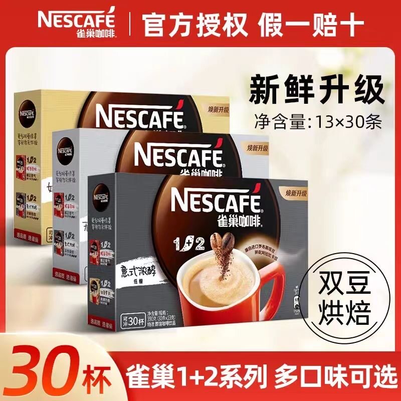 雀巢咖啡1+2特浓低糖30条盒装速溶原味三合一提神咖啡粉冲饮