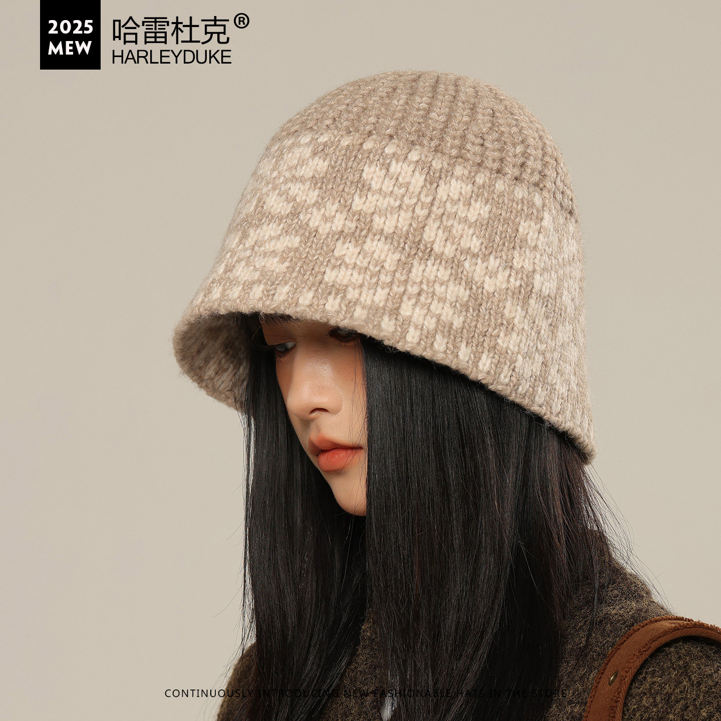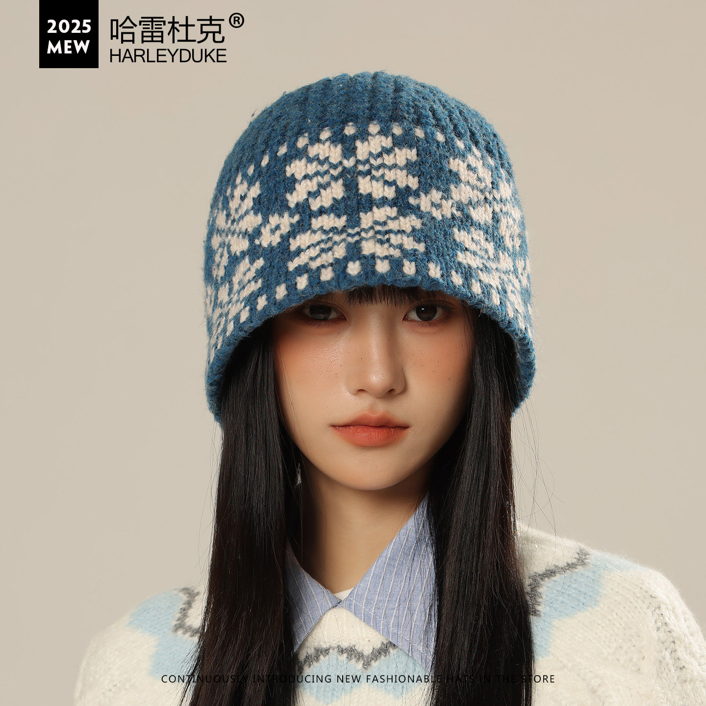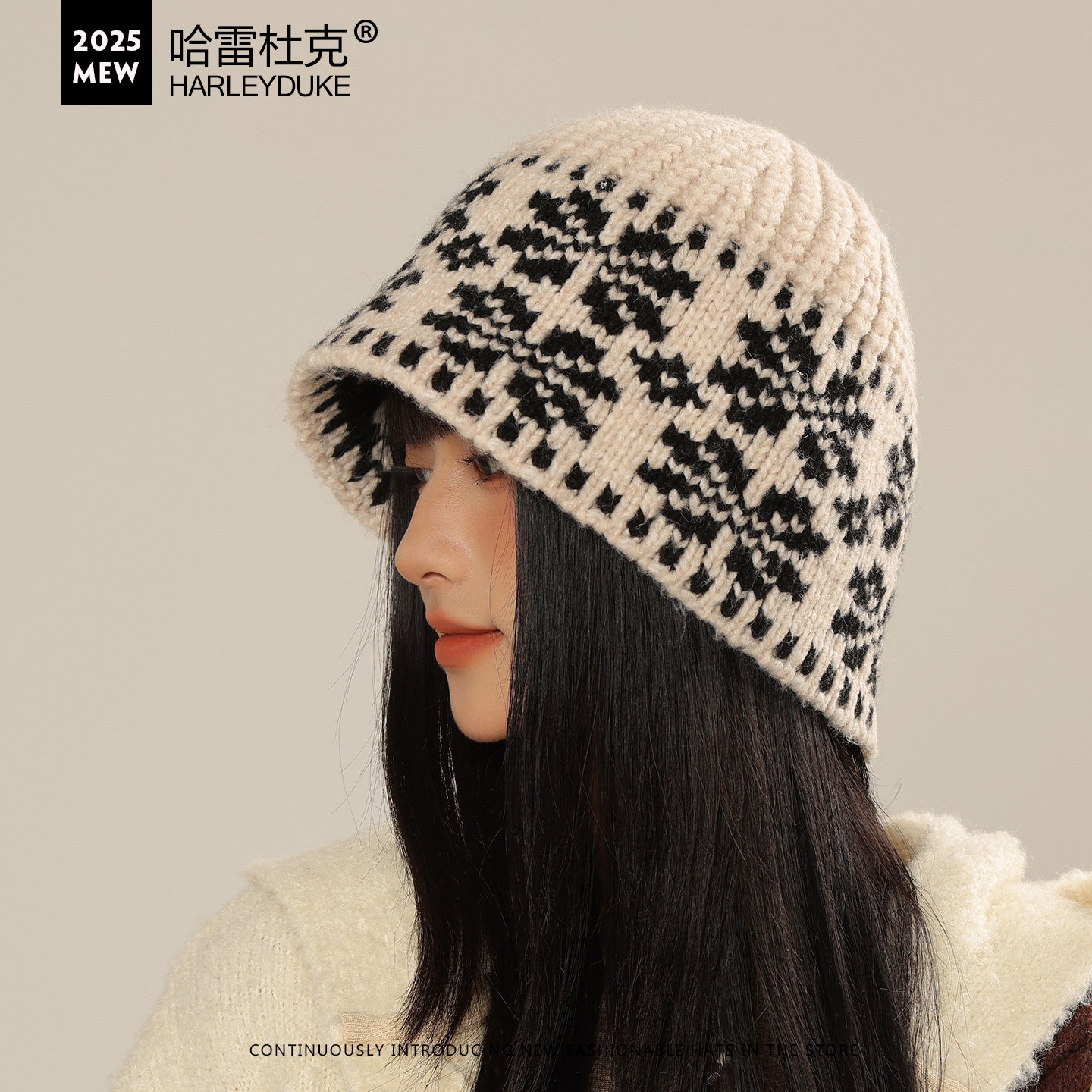 大头围提花针织盆帽子女秋冬季毛线帽保暖护耳复古时尚显脸小盆帽