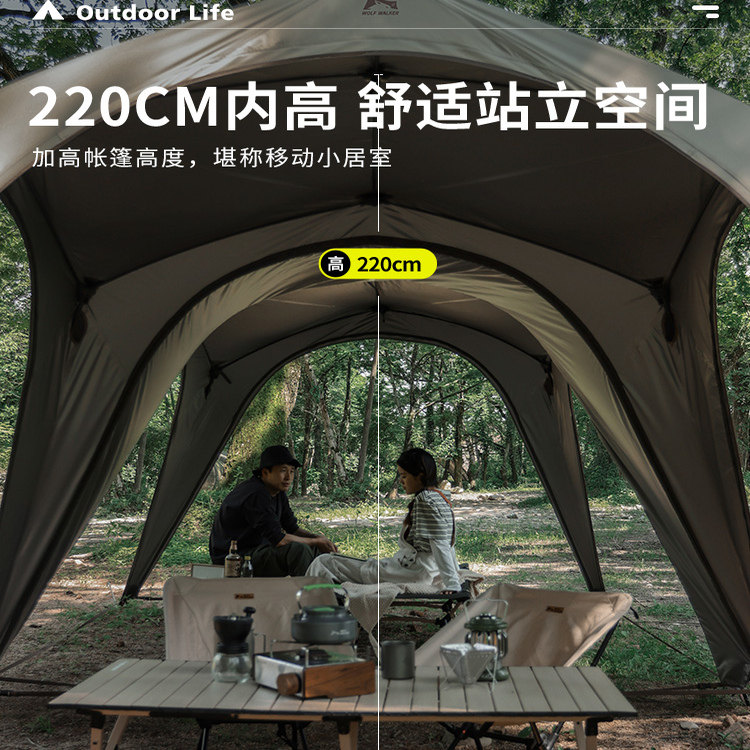 狼行者速开自动穹顶天幕帐篷二合一户外露营钛黑胶遮阳棚野营防晒