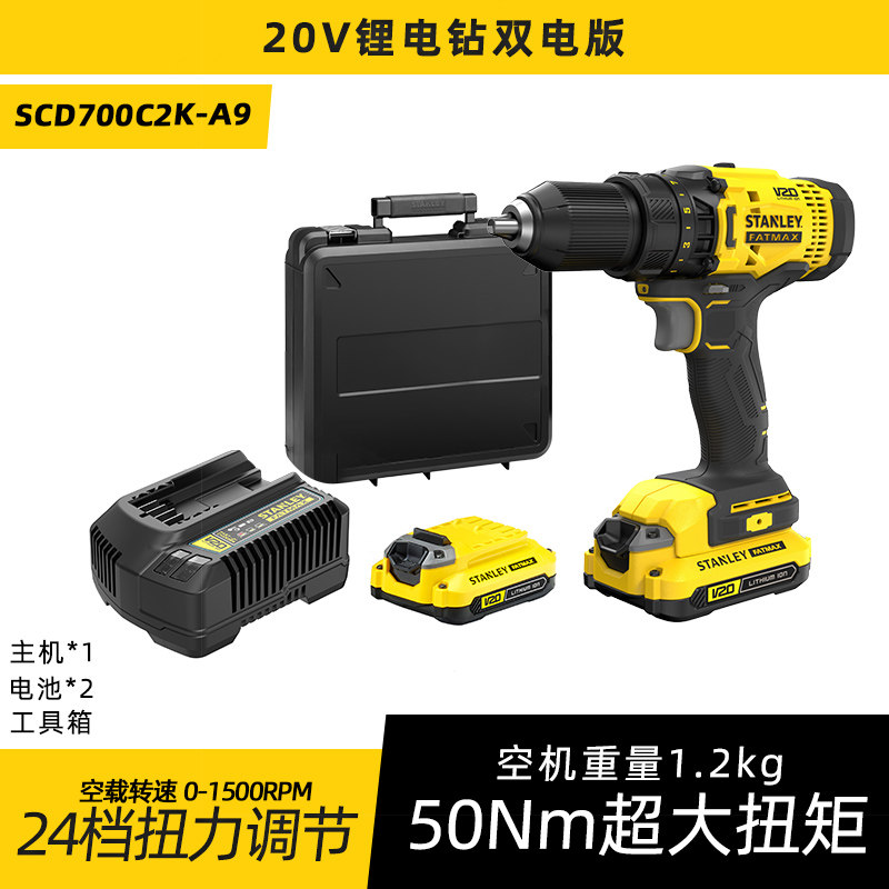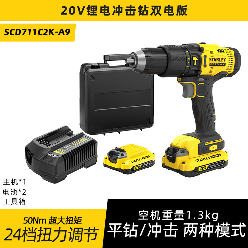 史丹利20V锂电无刷冲击钻螺丝刀多功能充电钻手电钻手持式手枪钻