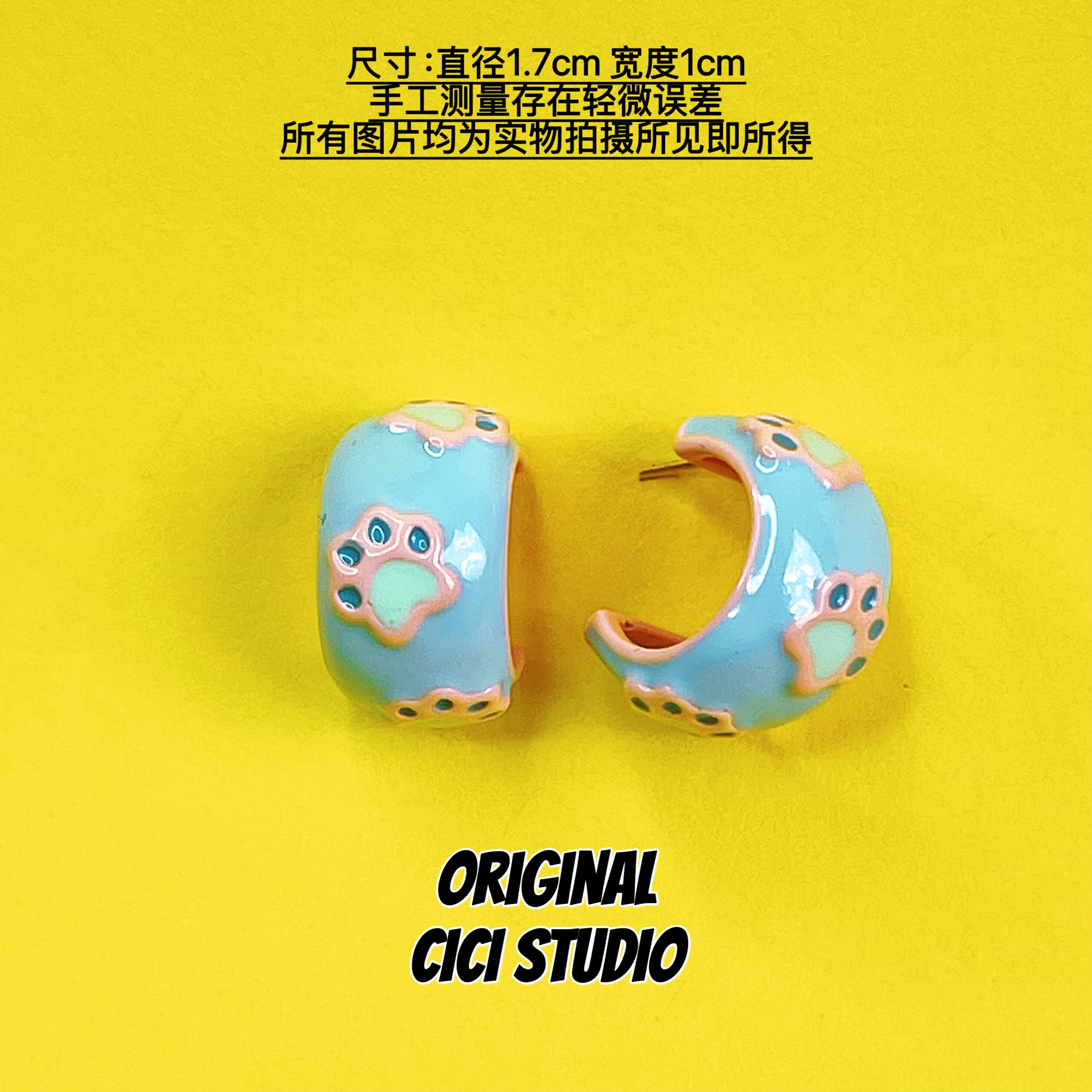 CICI STUDIO小众个性潮流彩色滴釉猫爪耳钉女ins甜酷多巴胺耳饰