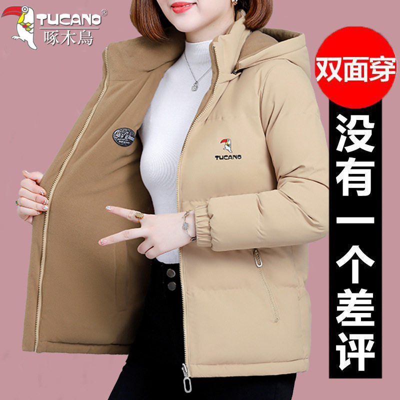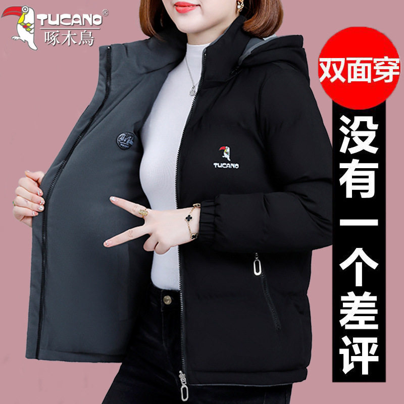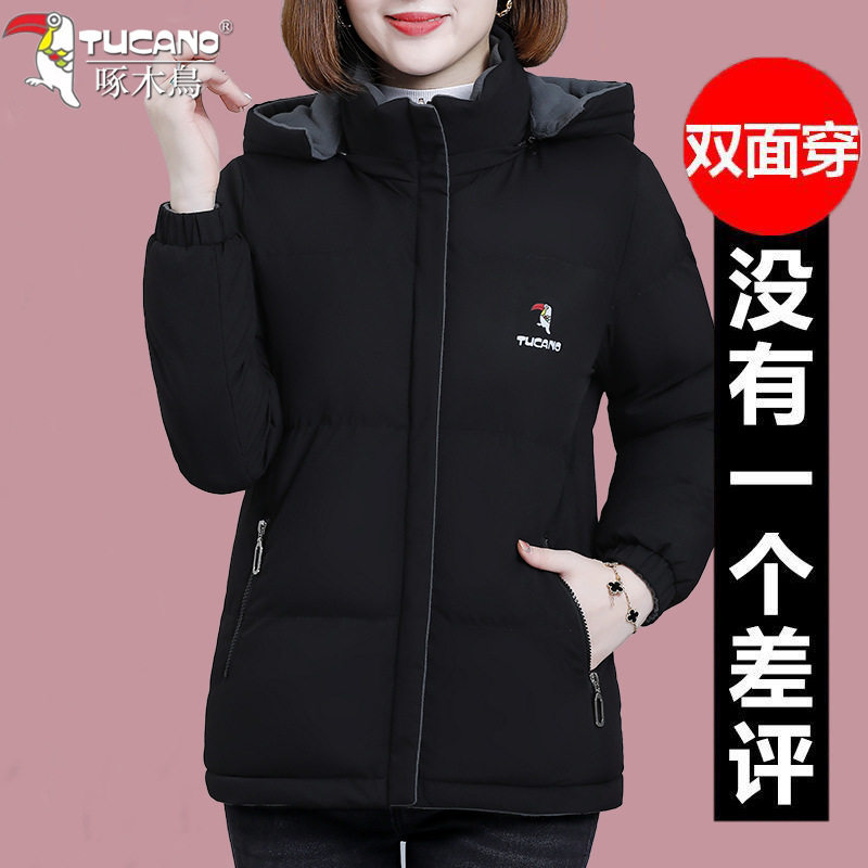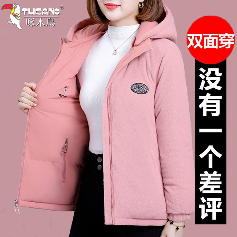 啄木鸟双面穿棉衣女士加厚外套女