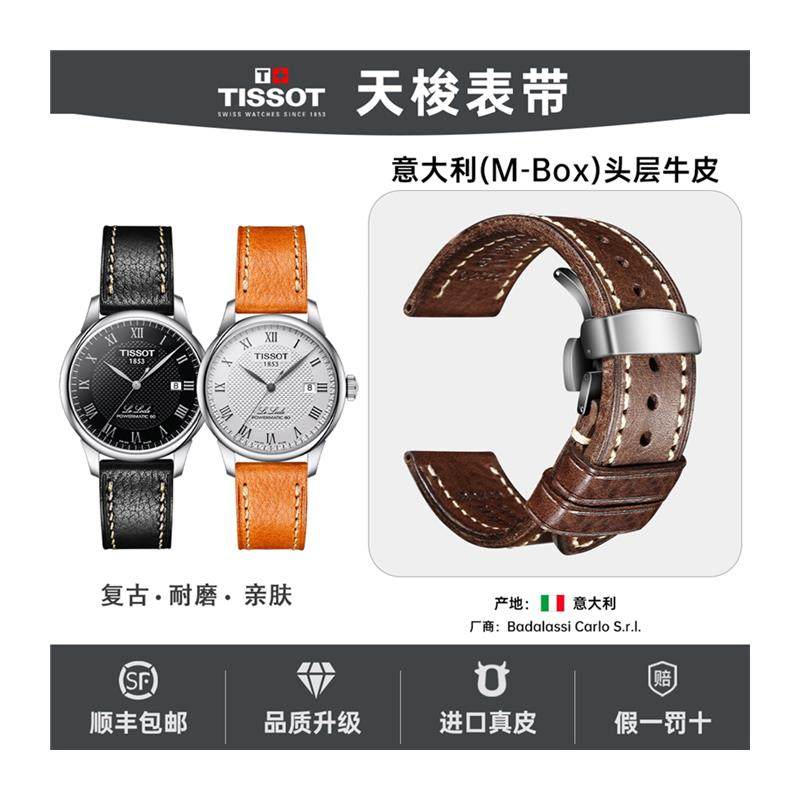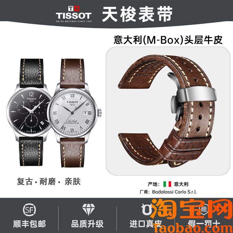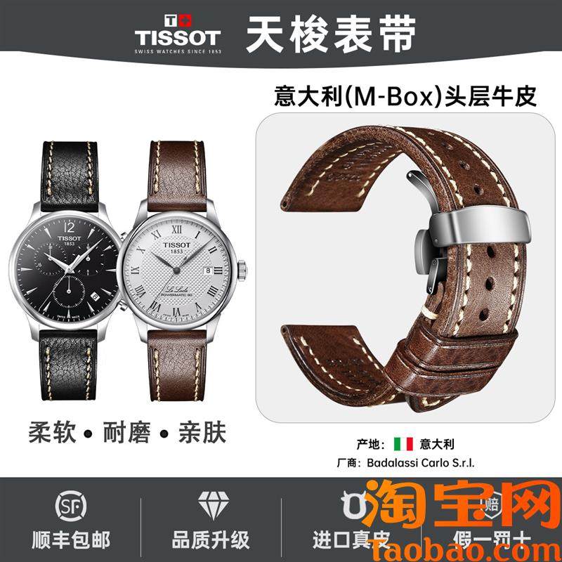 天梭18b53表带意大利复古牛皮适用男士杜鲁尔力洛克手表真皮表带