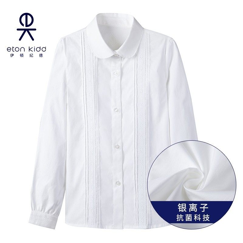 伊顿纪德校服学院中小学生班服春秋款长袖衬衣女童银离子白衬衫