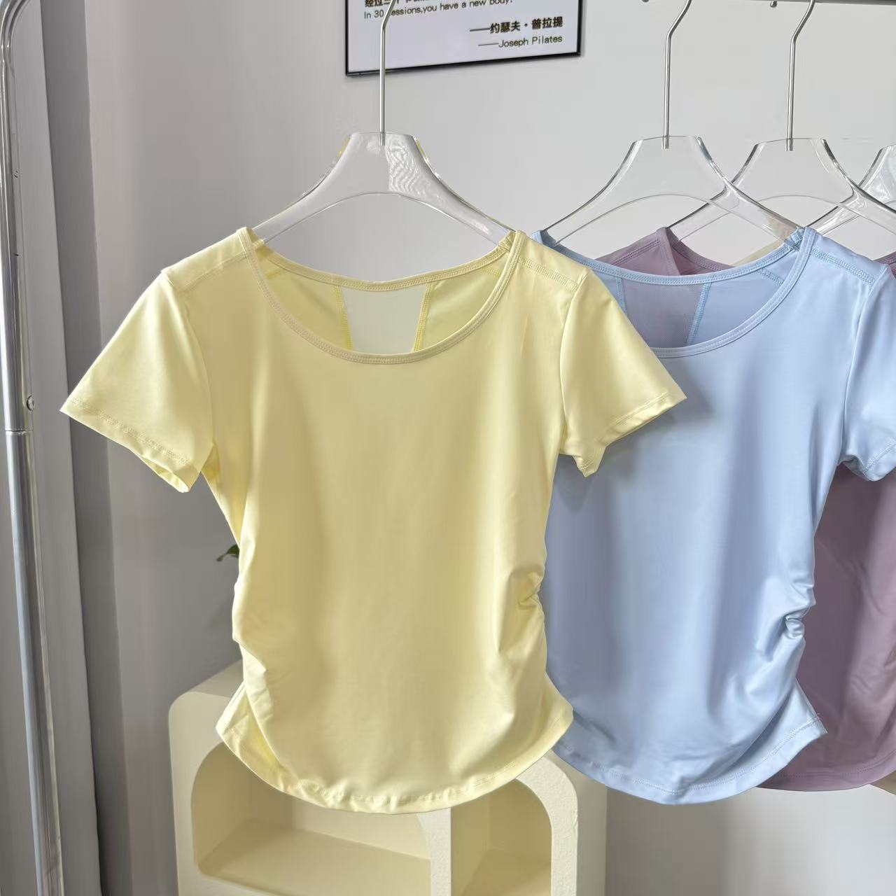 瑜伽服短袖套装女2025新款网纱拼接透气运动T恤跑步普拉提健身衣