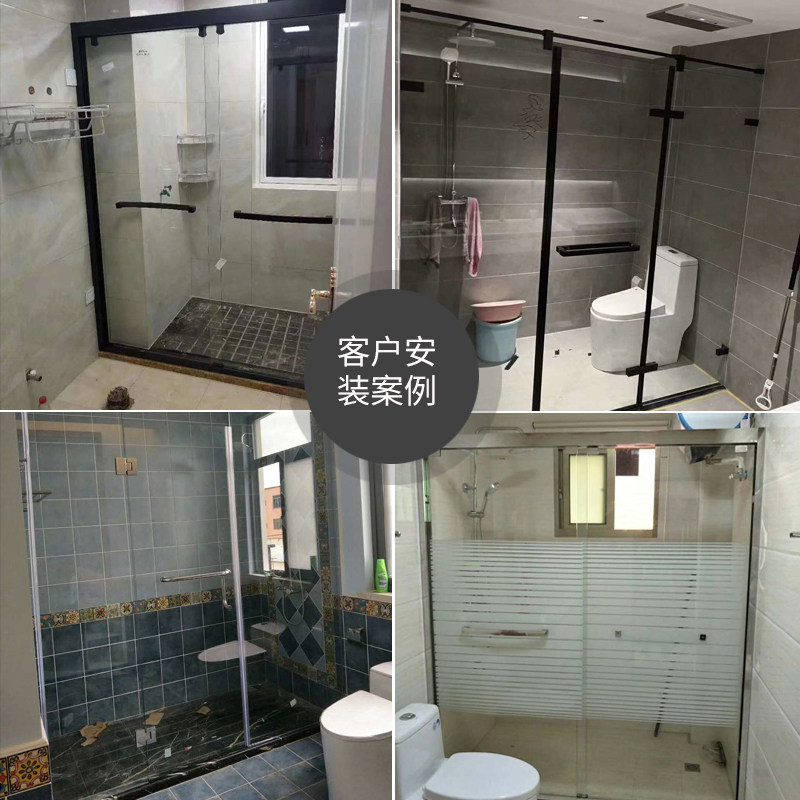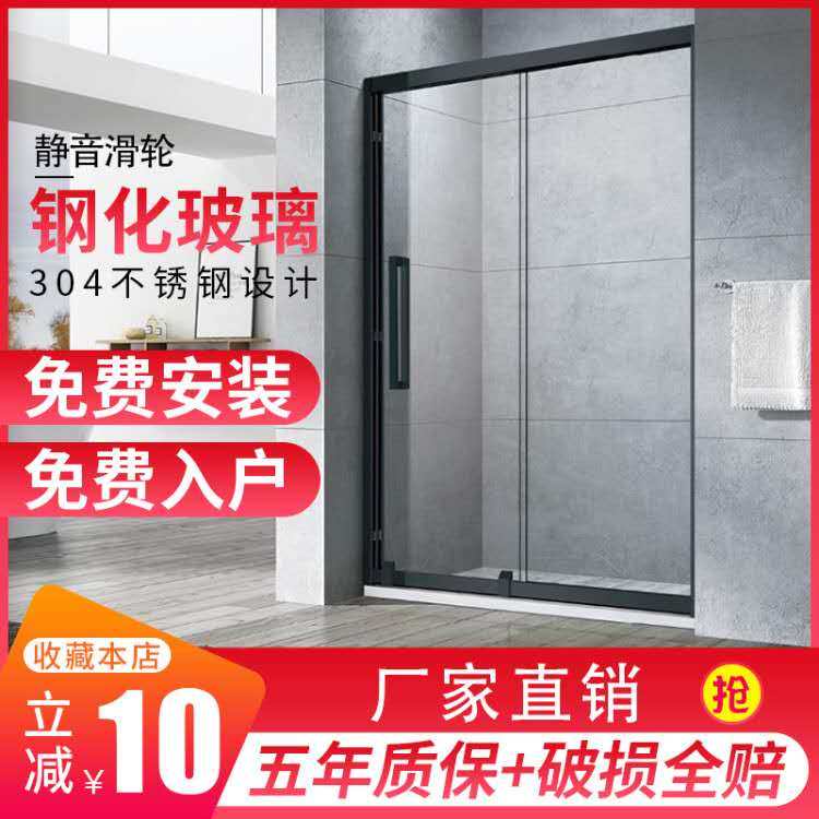 不锈钢一字形整体淋浴房家用卫生间浴室干湿分离推拉门隔断玻璃门