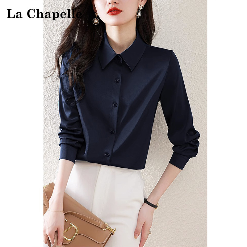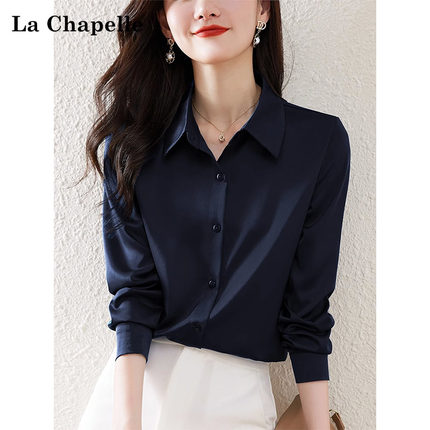 拉夏贝尔缎面长袖衬衫女士秋季新款修身显瘦轻熟风高级感叠穿衬衣