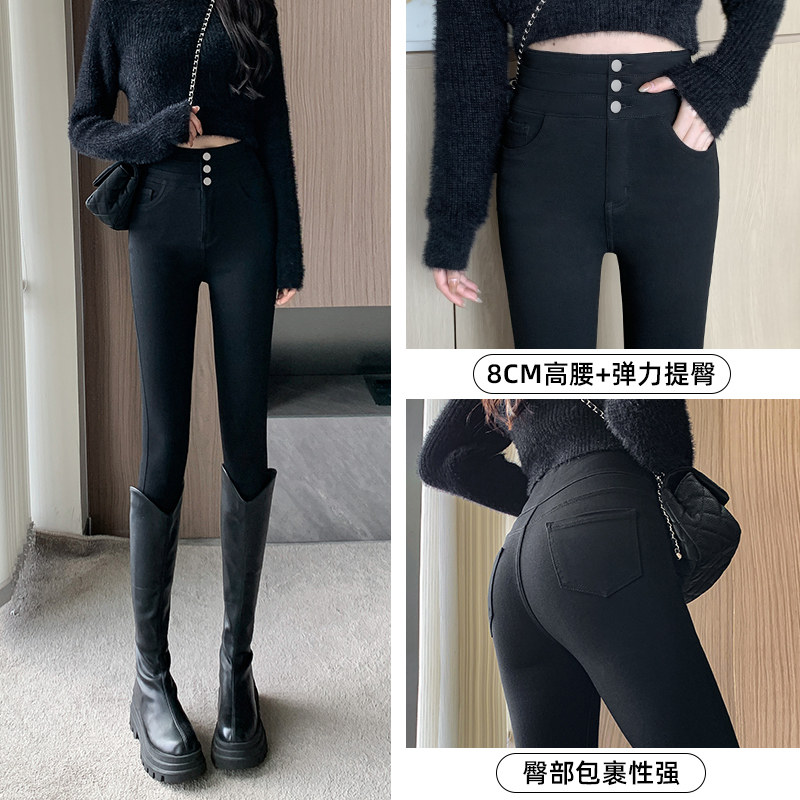黑色打底裤女秋冬外穿2025新款魔术高腰紧身弹力铅笔小脚裤黑裤子