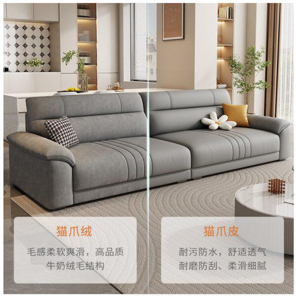 奶油风小户型沙发网红款简约客厅直排组合2024新款猫爪皮皮艺沙发
