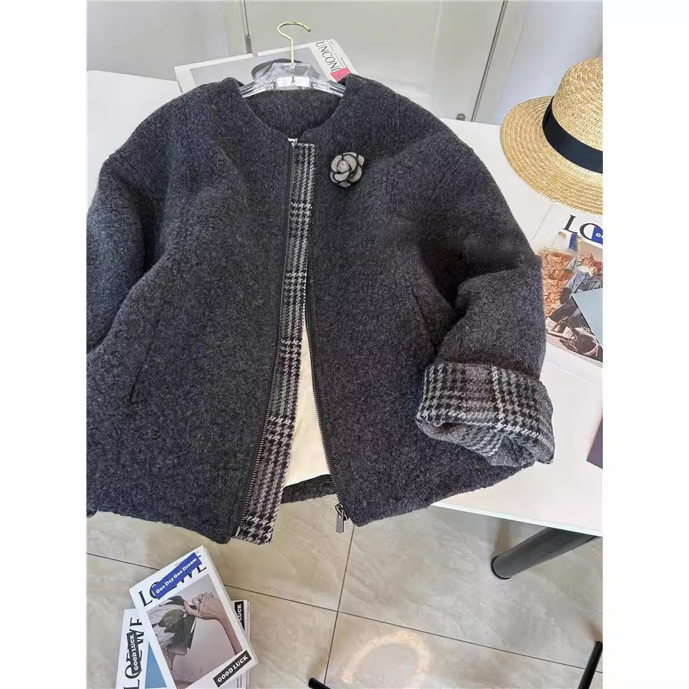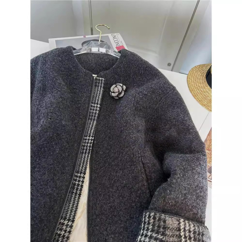 爵莱菲大码小香风外套女冬季法式高级感中长款羊毛呢羽绒服上衣