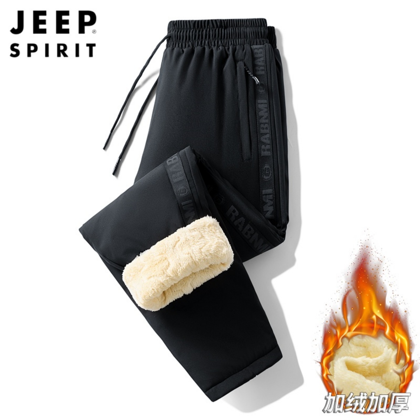 吉普加绒加厚运动裤男士冬季大码宽松男裤爸爸装羊羔绒休闲长裤子