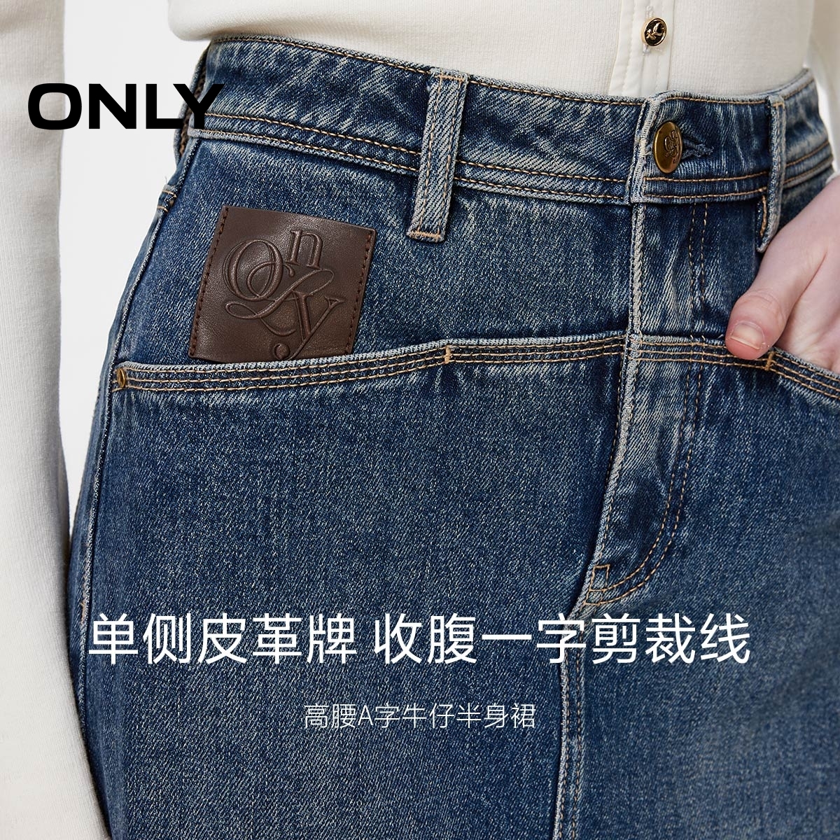 ONLY口袋高腰A字牛仔半身裙