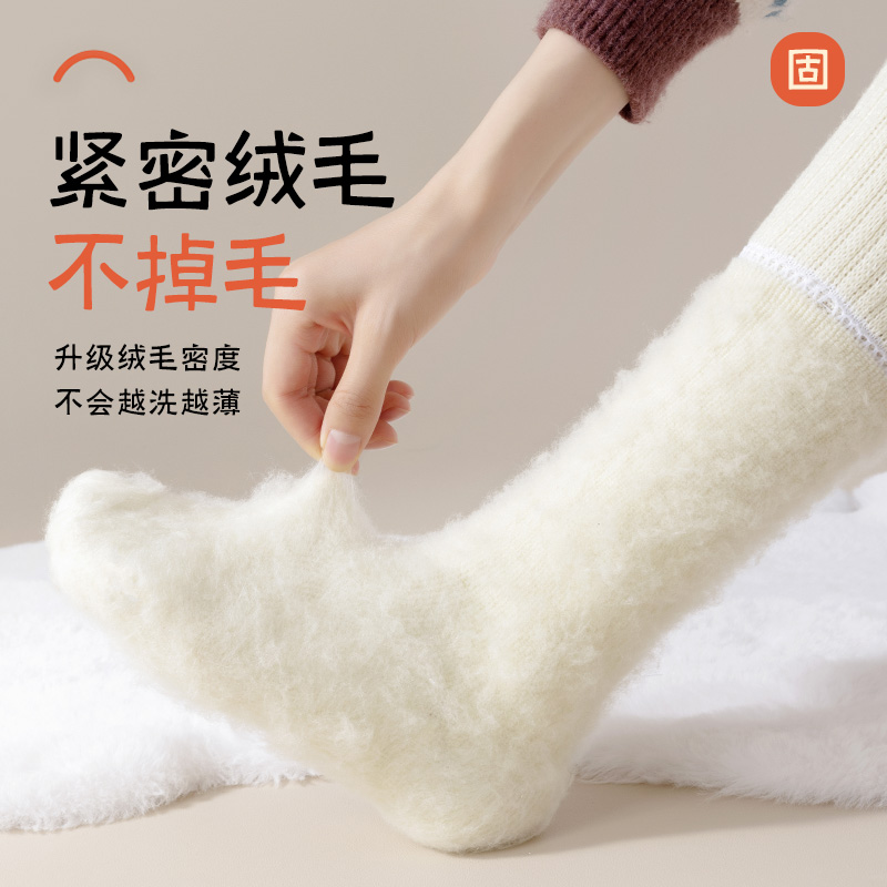 小腿袜子女款秋冬季加绒加厚保暖中筒袜仿羊绒羊毛长筒高筒月子袜