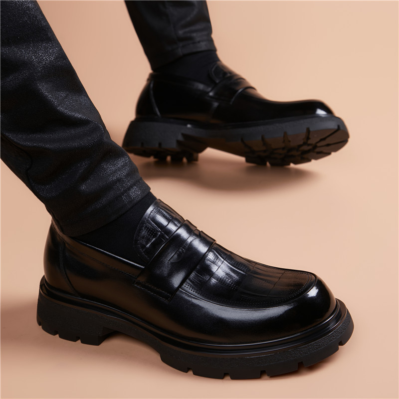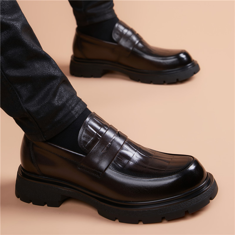 2025新款高档头层牛皮一脚蹬厚底男鞋商务休闲英伦真皮皮鞋男正装
