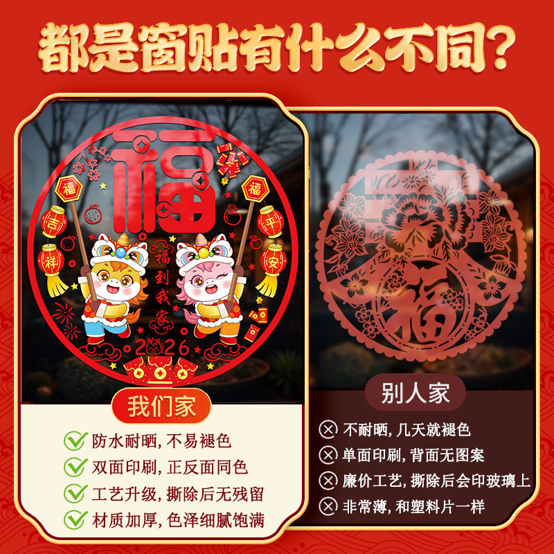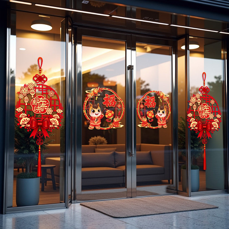 新年静电贴窗花2026新款马年窗贴装饰春节过年布置福字玻璃门贴纸
