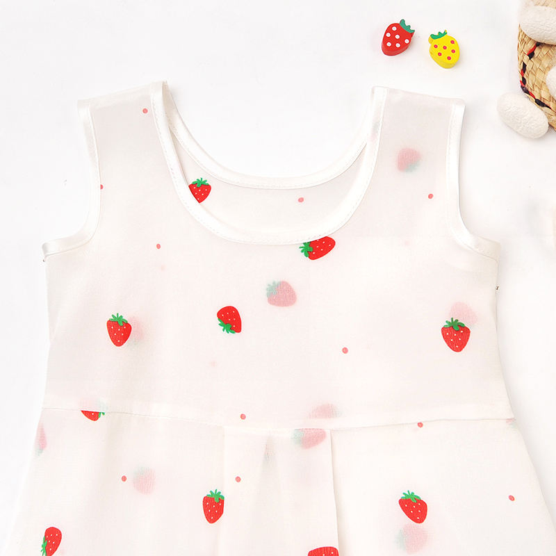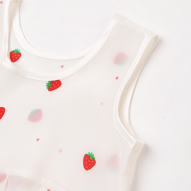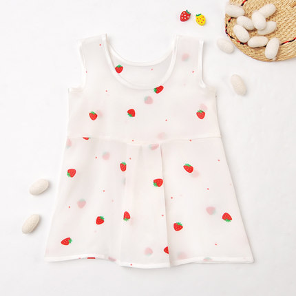 夏季婴幼儿波点草莓真丝连衣裙宝宝桑蚕丝背心裙女童休闲公主裙薄