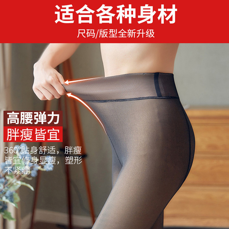 黑透肤假透肉打底裤女加绒加厚春秋冬一体无缝连裤袜黑丝光腿神器