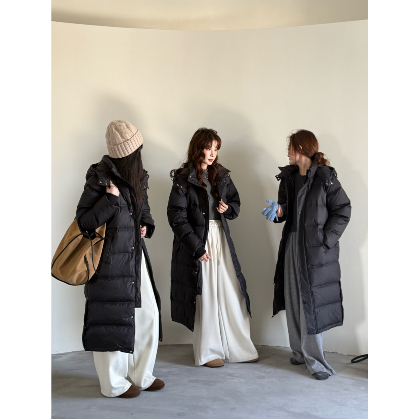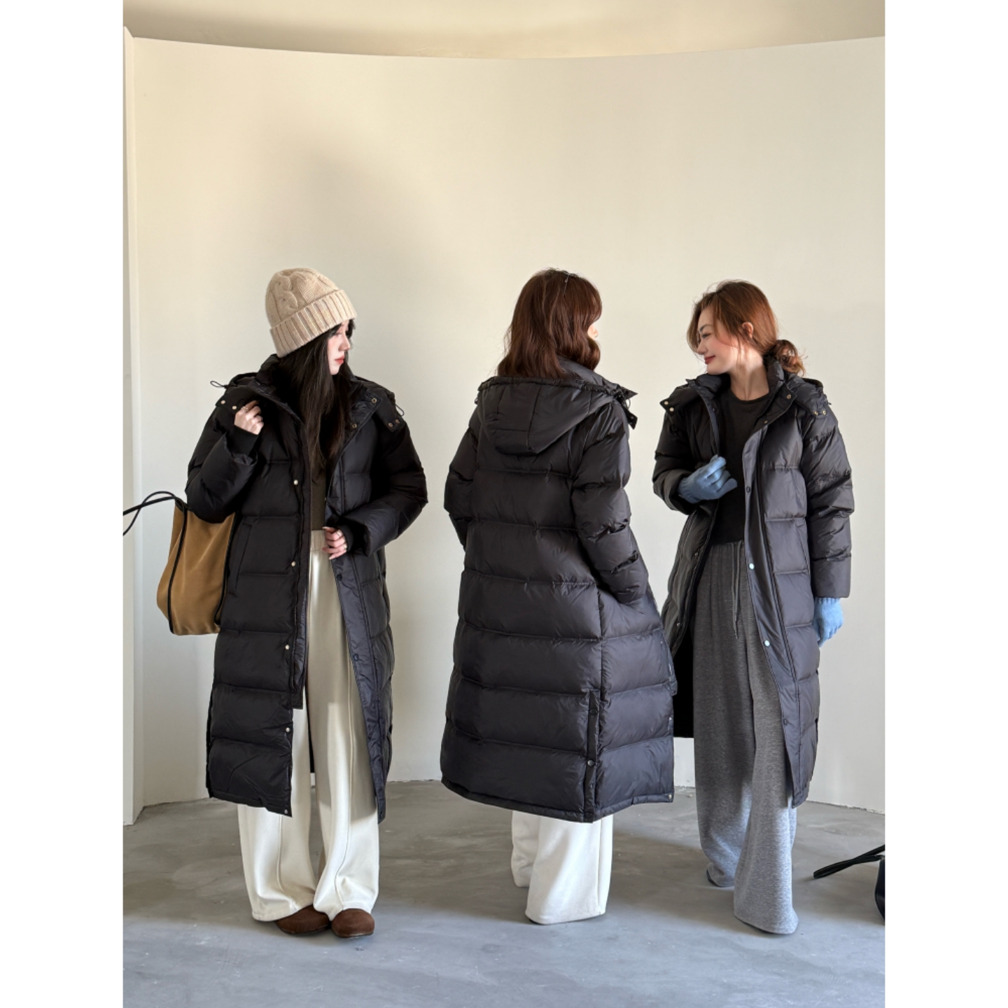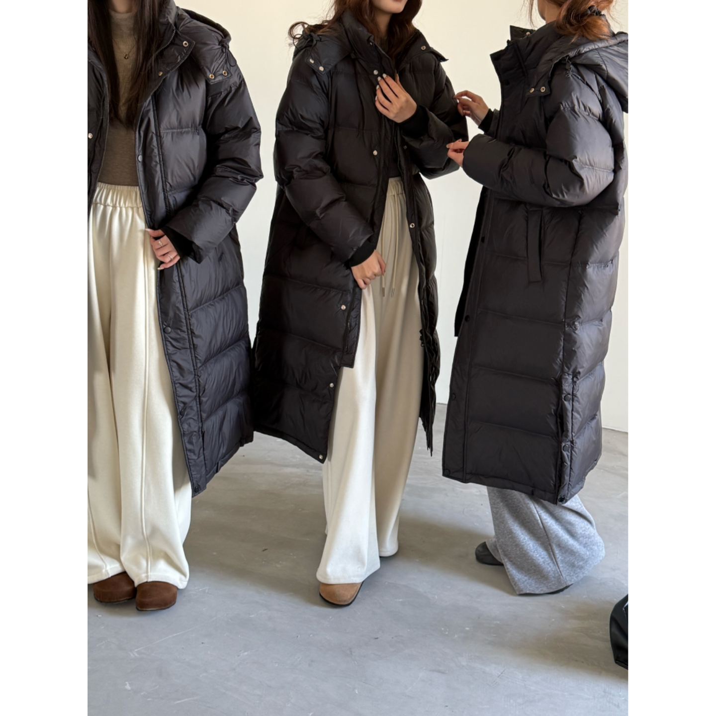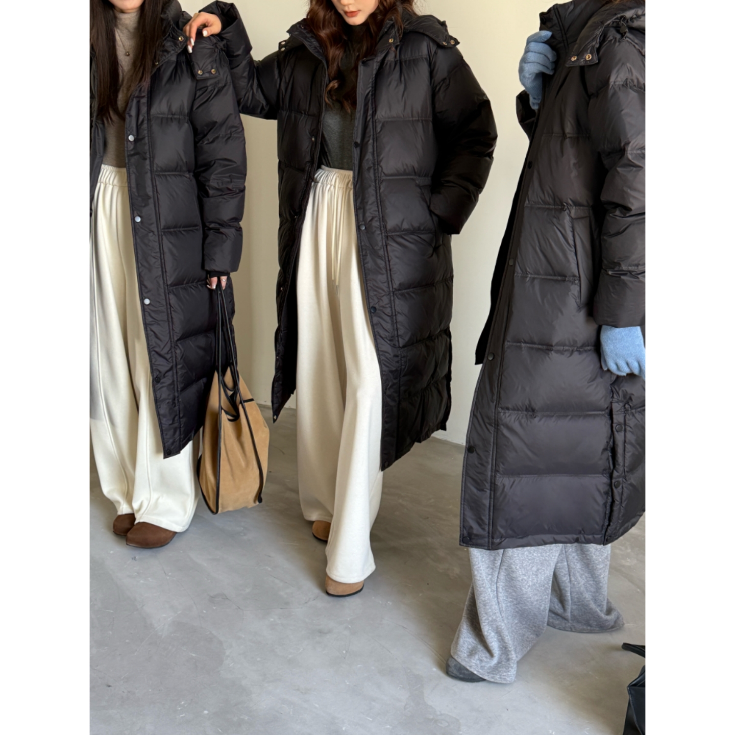 简约通勤黑色羽绒服女中长款2025新款冬装白鸭绒宽松过膝外套加厚